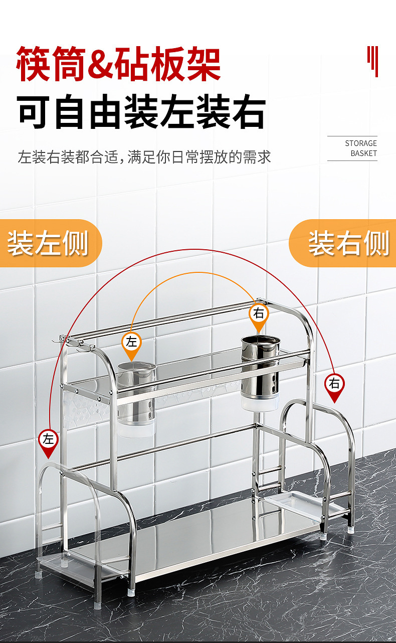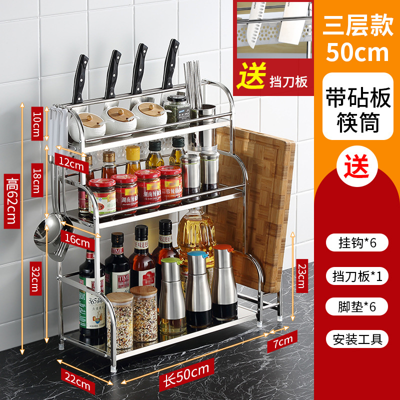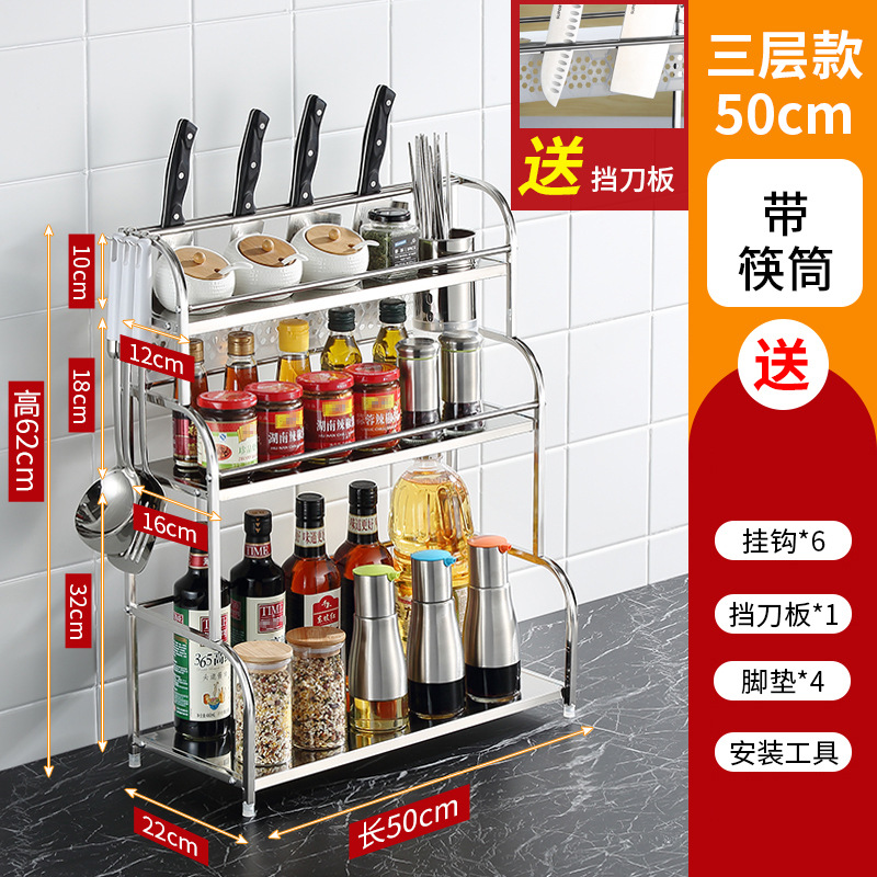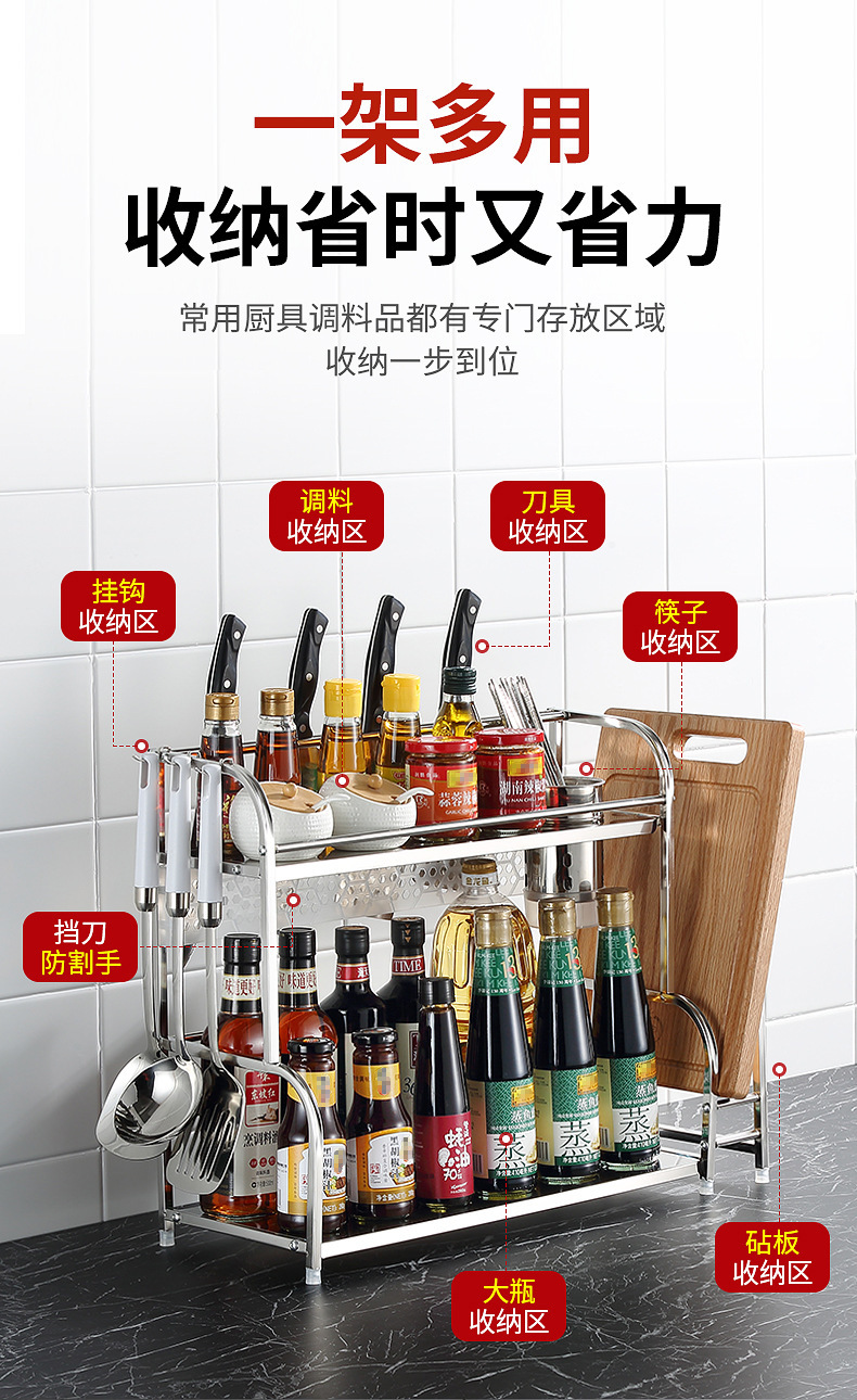 공장 도매 대용량 스테인레스 스틸 데스크탑 주방 랙 보관 랙 조미료 랙 다층 주방 보관 랙스토어 가기