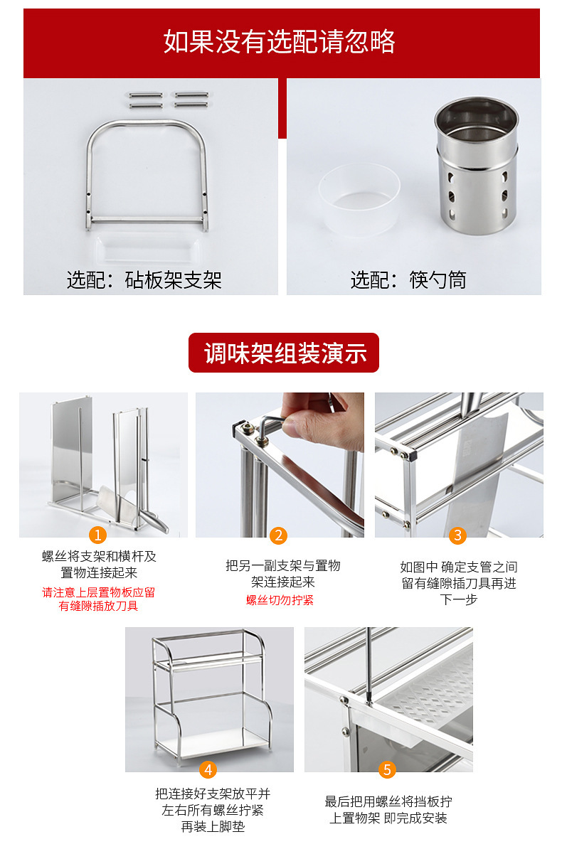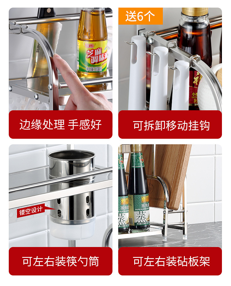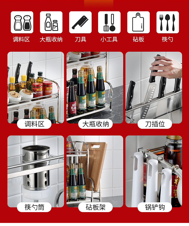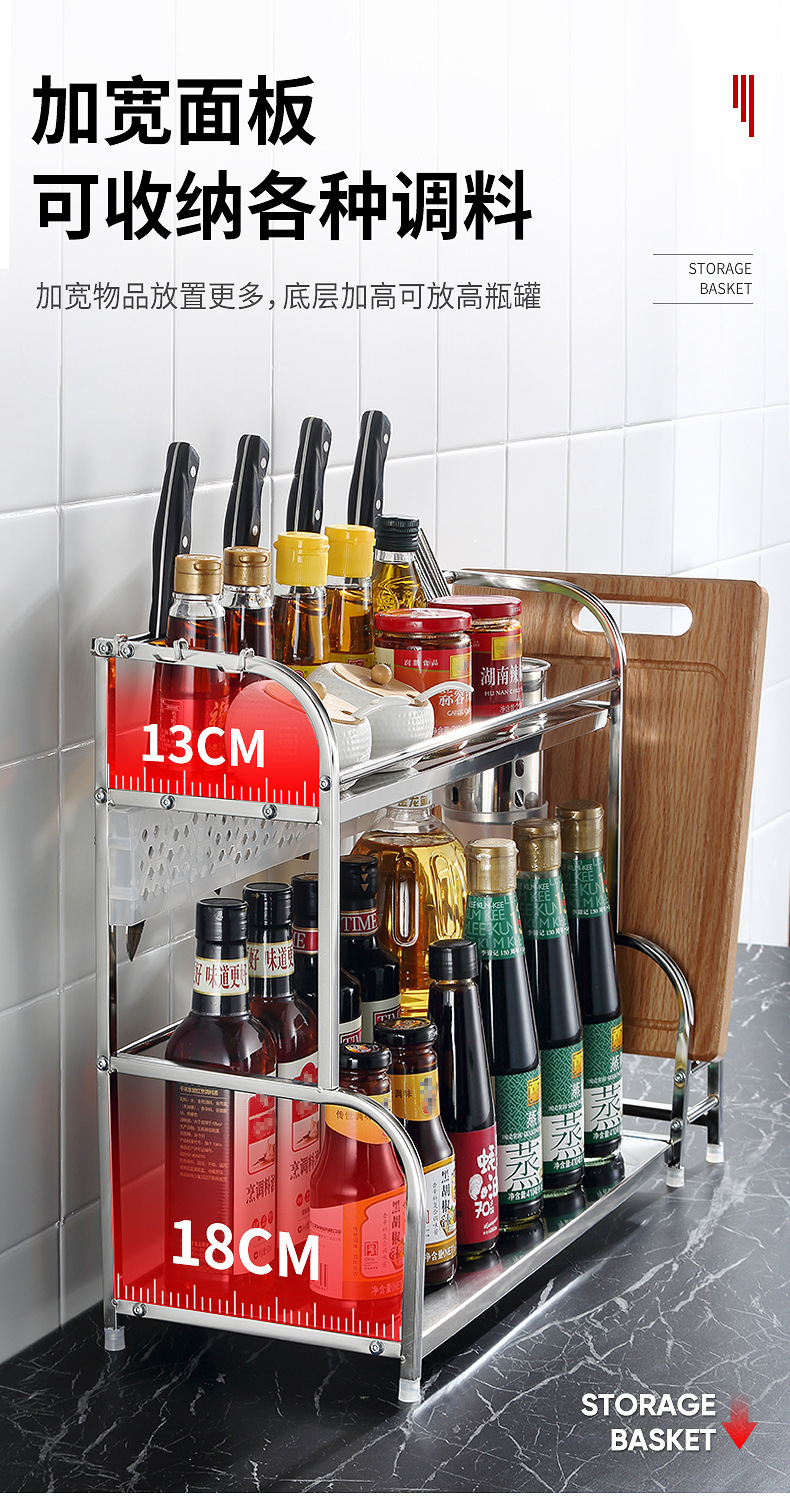 공장 도매 대용량 스테인레스 스틸 데스크탑 주방 랙 보관 랙 조미료 랙 다층 주방 보관 랙