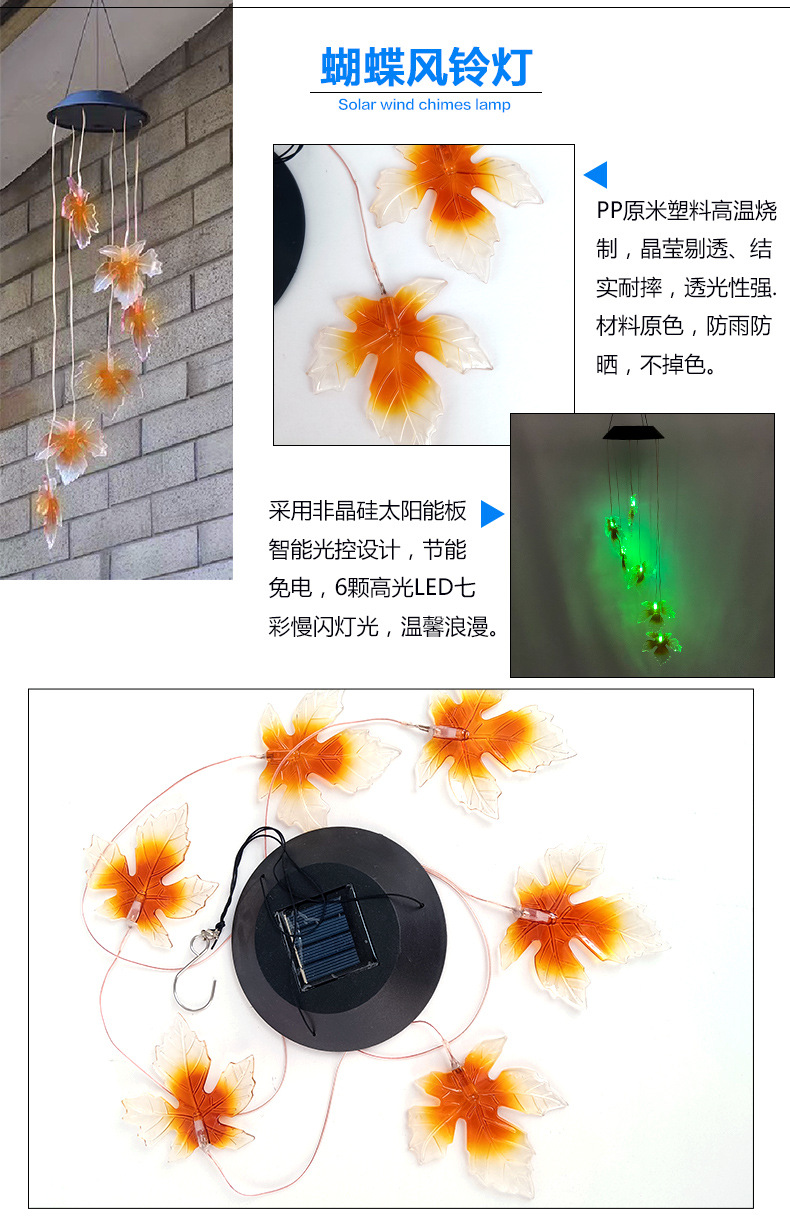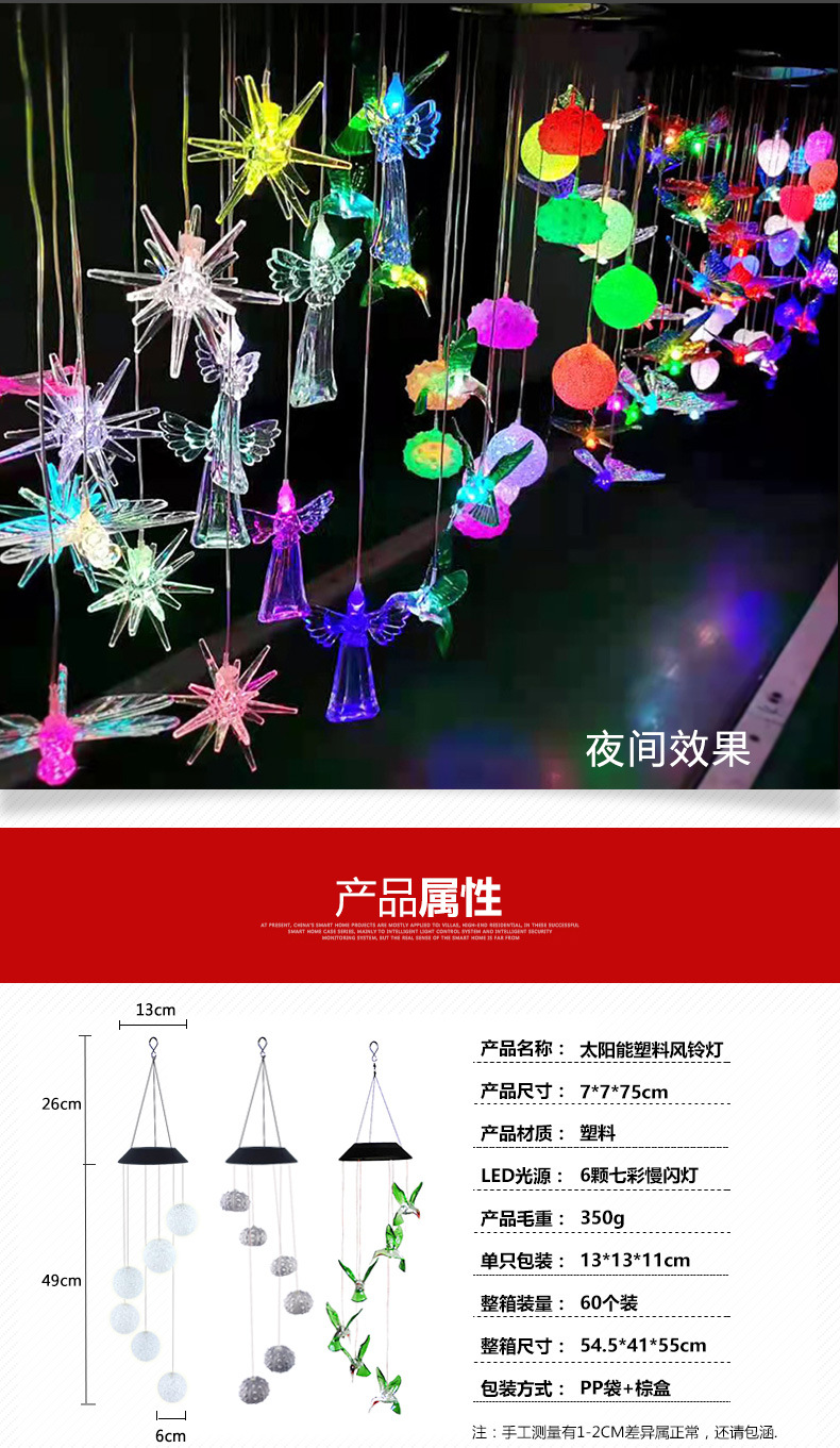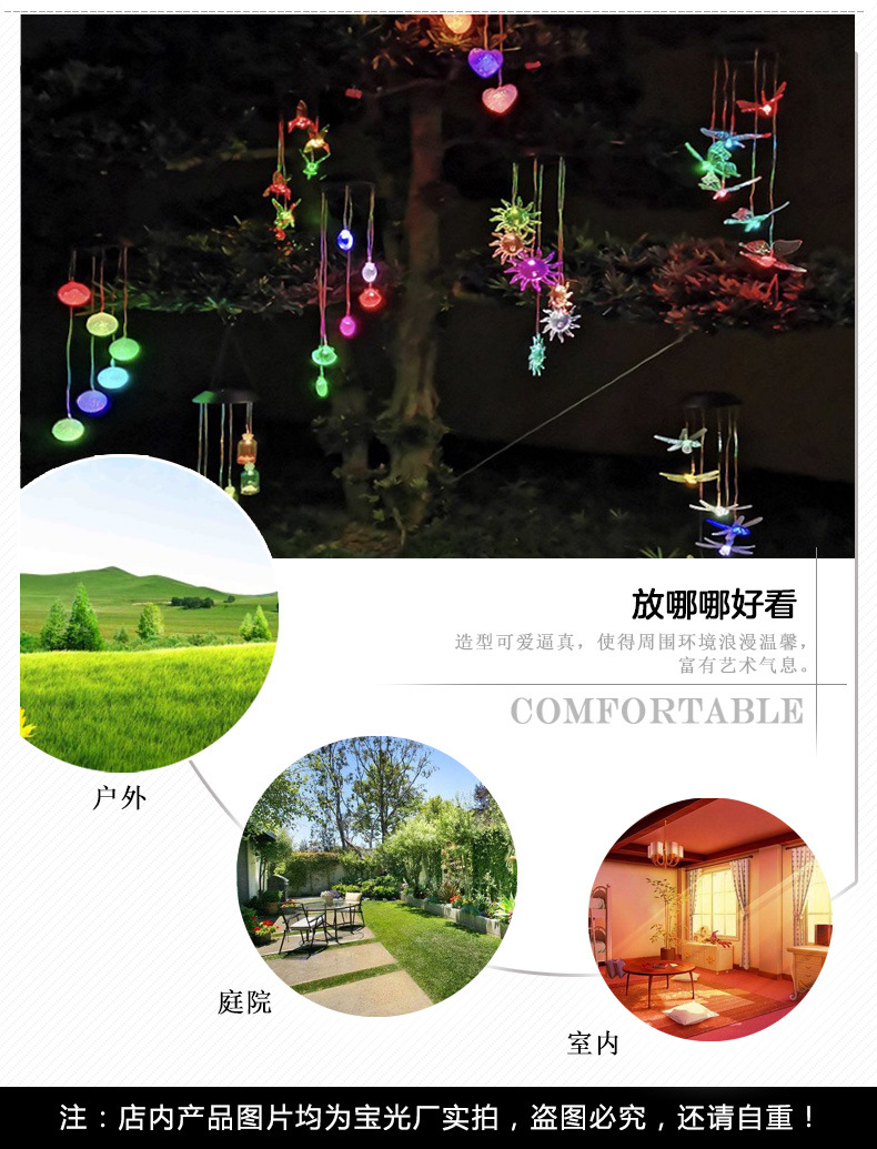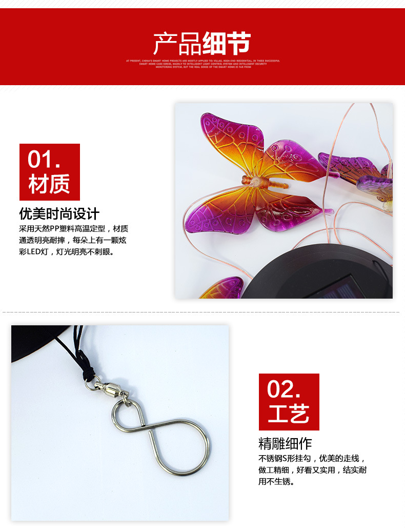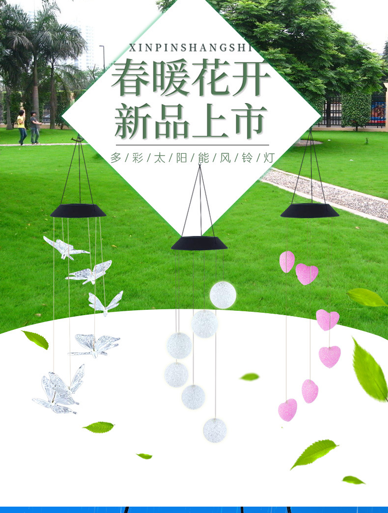아마존 핫 세일 새로운 방수 태양 나비/벌새 바람 종 조명 야외 정원 풍경 장식 랜턴