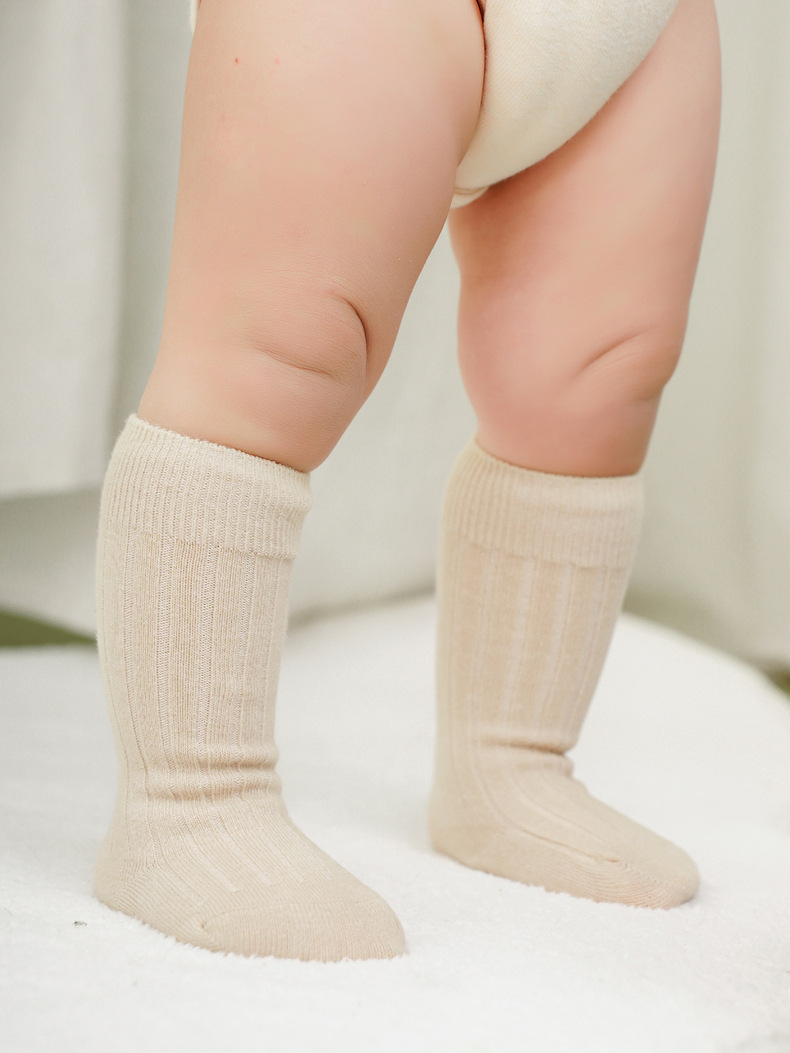 유럽과 미국 스타일의 어린이 양말 남성과 여성의 아기 스타킹 더블 바늘 일반 구덩이 스트립 중간 길이 양말 흰색 1 년 된 빨간 양말