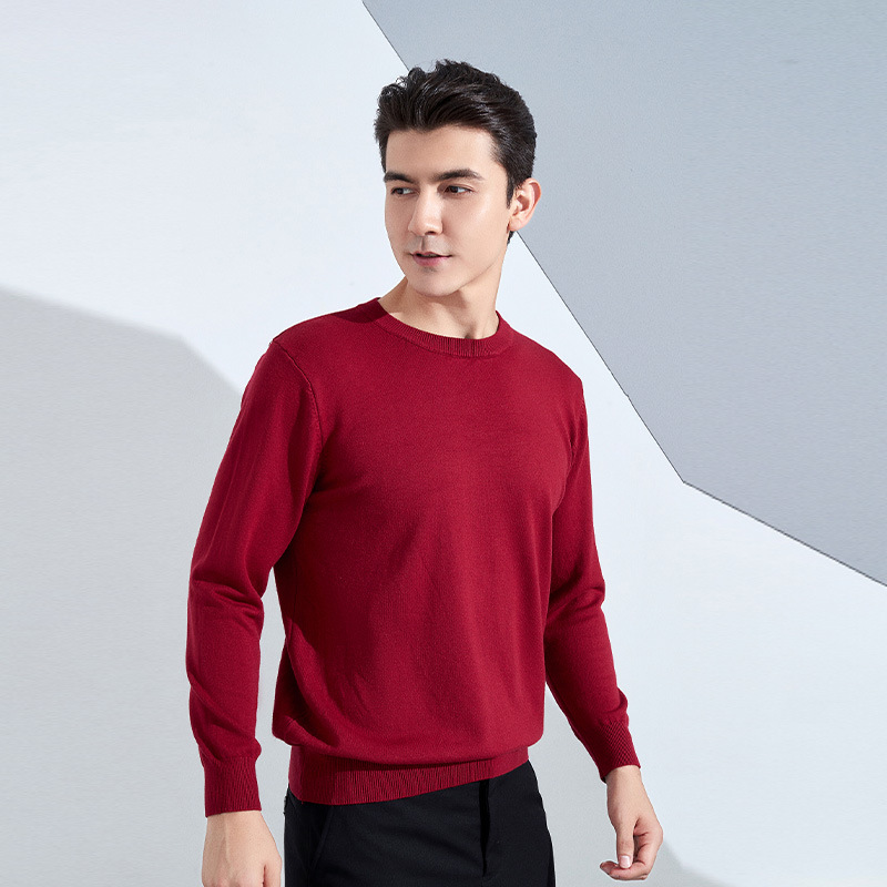 국경 간 2025 새로운 가을 빨간색 스웨터 남성용 라운드 넥 느슨한 두꺼운 풀오버 니트 바닥 셔츠