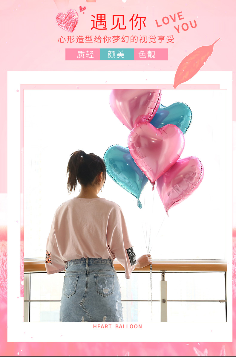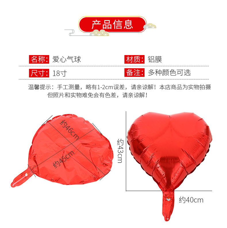 18 인치 하트 모양의 알루미늄 호일 풍선 생일 웨딩 룸 발렌타인 데이 러브 장면 장식 도매 풍선 사랑스토어 가기