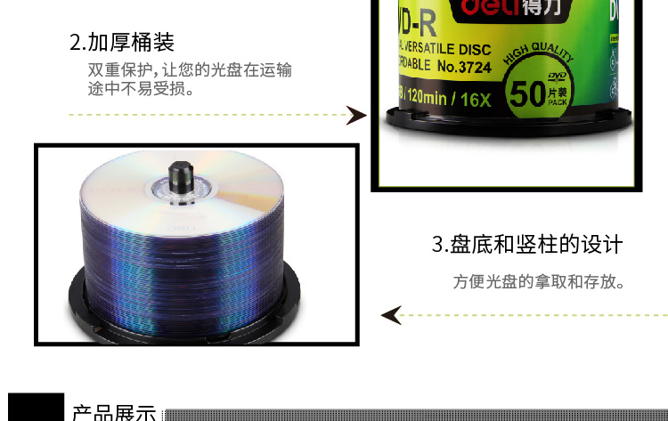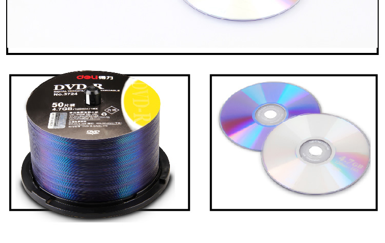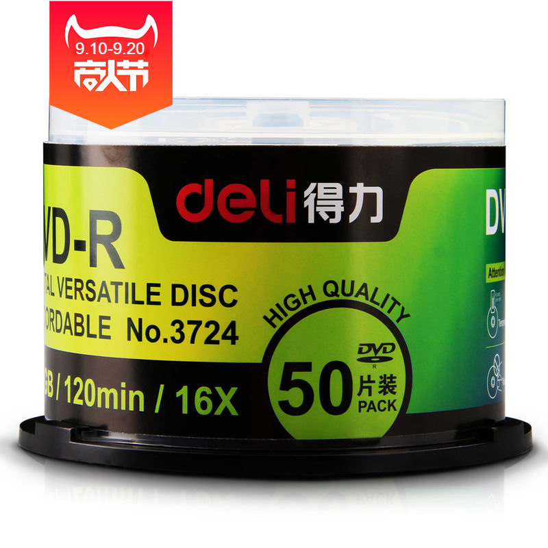 Deli 3724 기록 가능한 DVD 디스크는 데이터를 저장하기 위해 반사층 실버 원료를 사용합니다.
