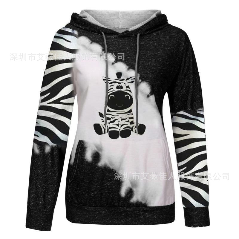 2020 아마존 소원 폭발 유럽과 미국 뜨거운 여성의 느슨한 탑 암소 인쇄 후드 긴 소매 스웨터스토어 가기