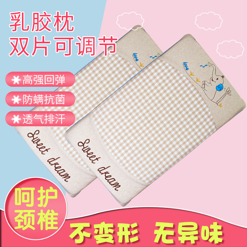 다운 스트림 핫 세일 어린이 베개 0-6 세 더블 코어 라텍스 높이 조절 가능한 라미 코튼 베갯잇 이동식 및 빨