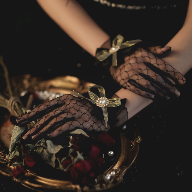 한국 스타일 블랙 빈티지 섹시 레이스 멋진 파티 칵테일 장갑 중공 레이스 웨딩 에티켓 매칭 장갑