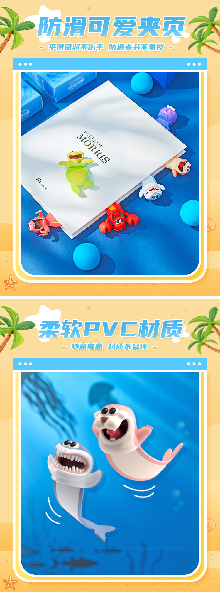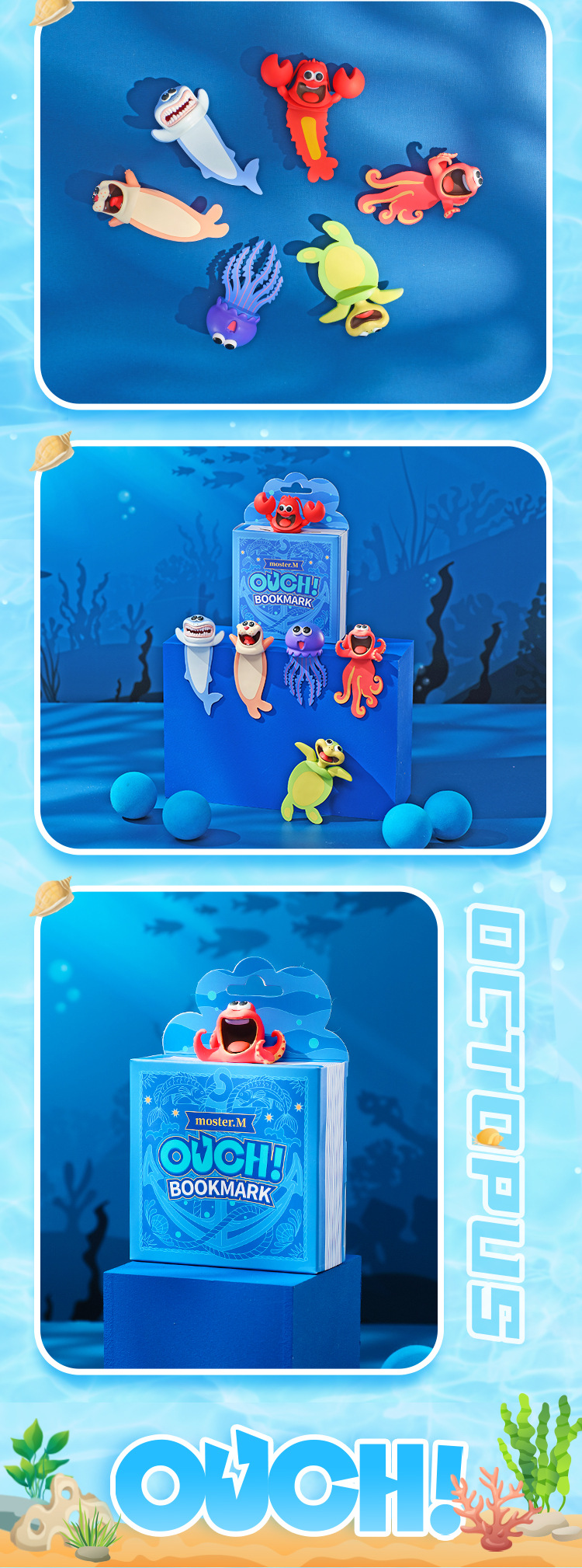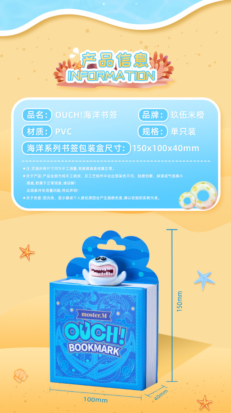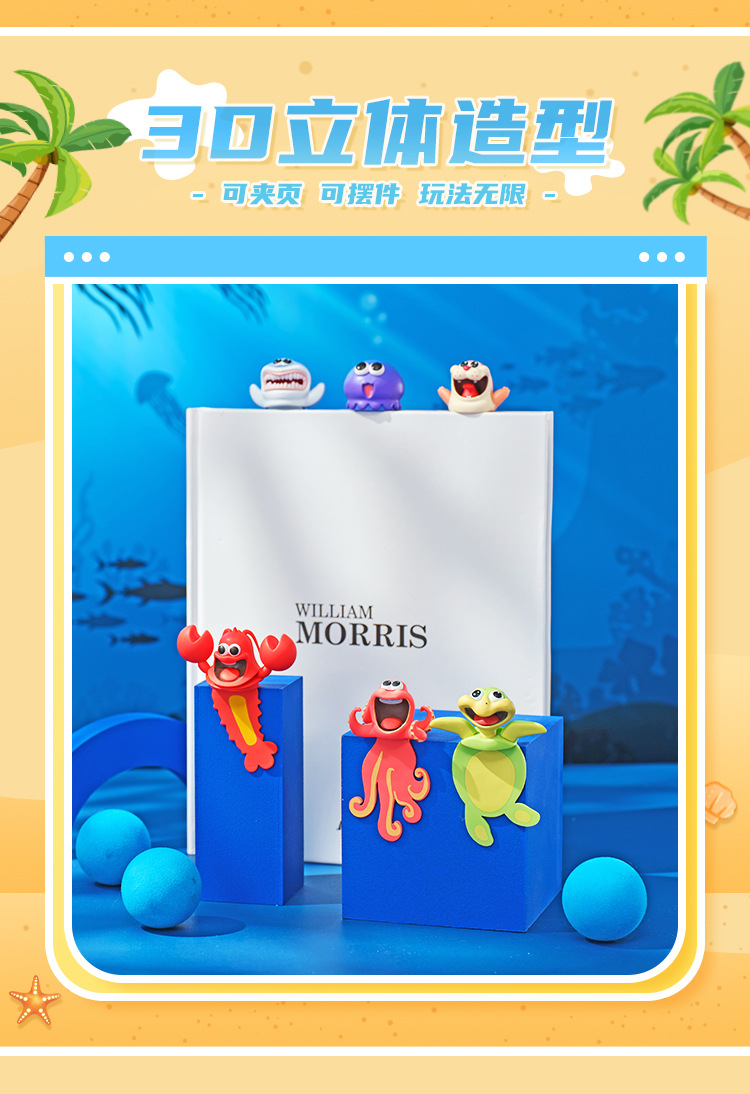 Jiuwu 쌀 오렌지 오리지널 PVC 3D 해양 동물 책갈피 상어 거북이 문어 창조적 인 창조스토어 가기
