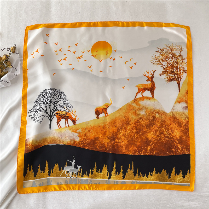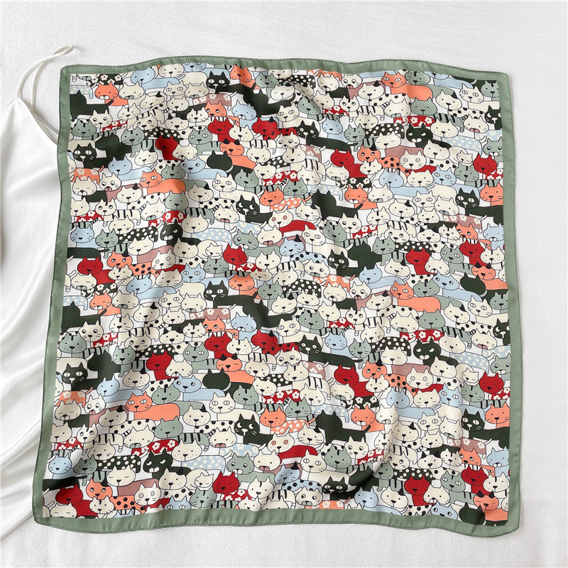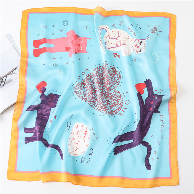 새로운 동물 스카프 여자의 만화 토끼 패턴 스카프 작은 사각형 스카프 여자 친구 선물 한국 물방울 무늬 스카프스토어 가기