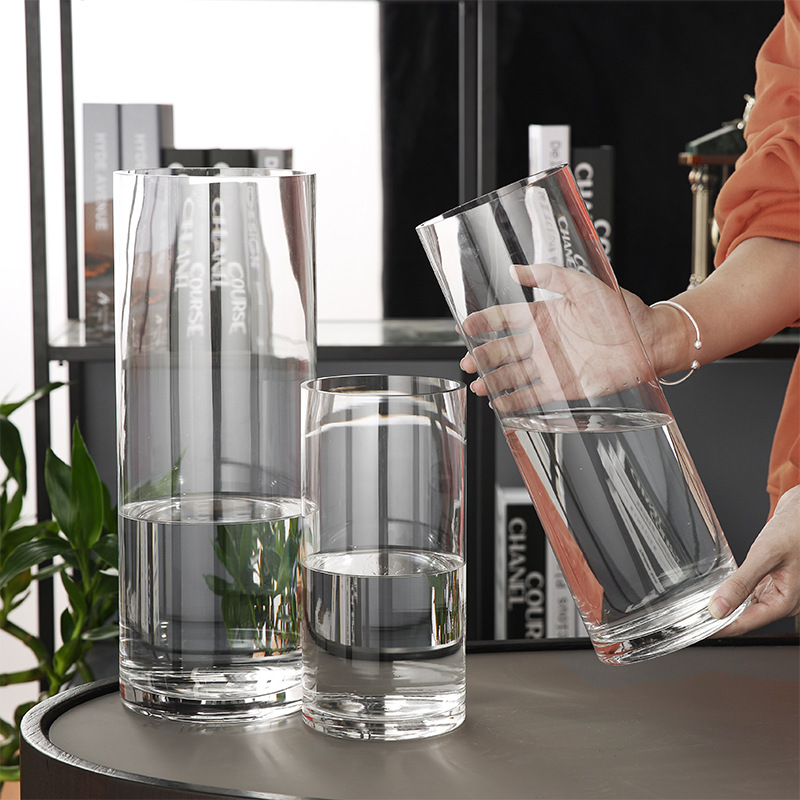 대형 투명 직선 유리 꽃병 거실 바닥용 장식품 인테리어 소품