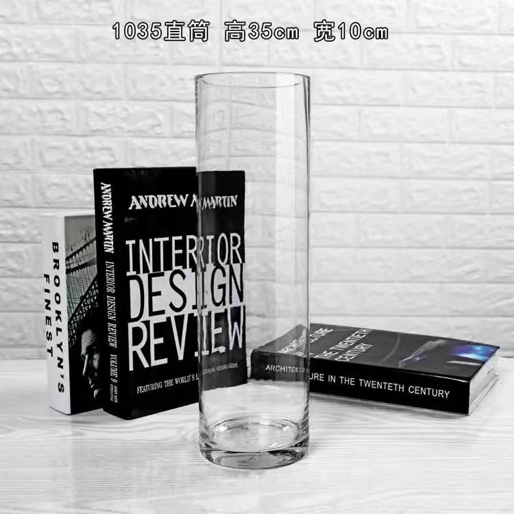 대형 투명 직선 유리 꽃병 거실 바닥용 장식품 인테리어 소품스토어 가기