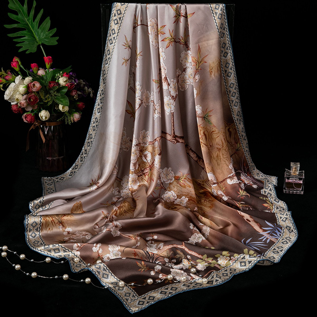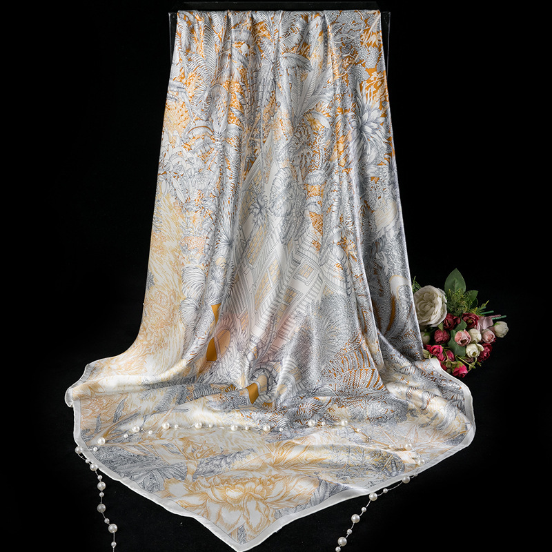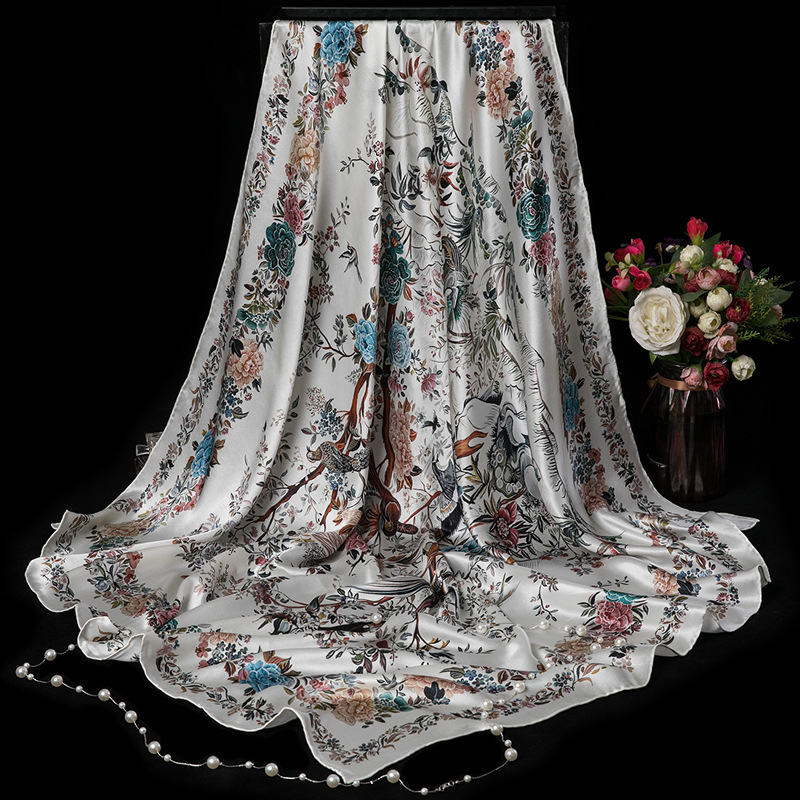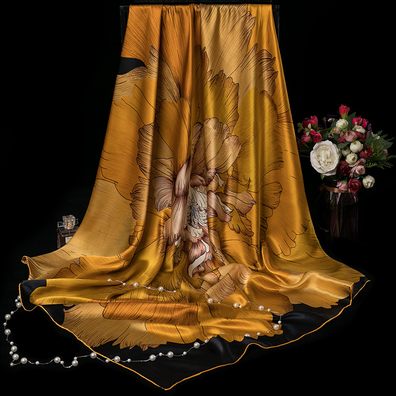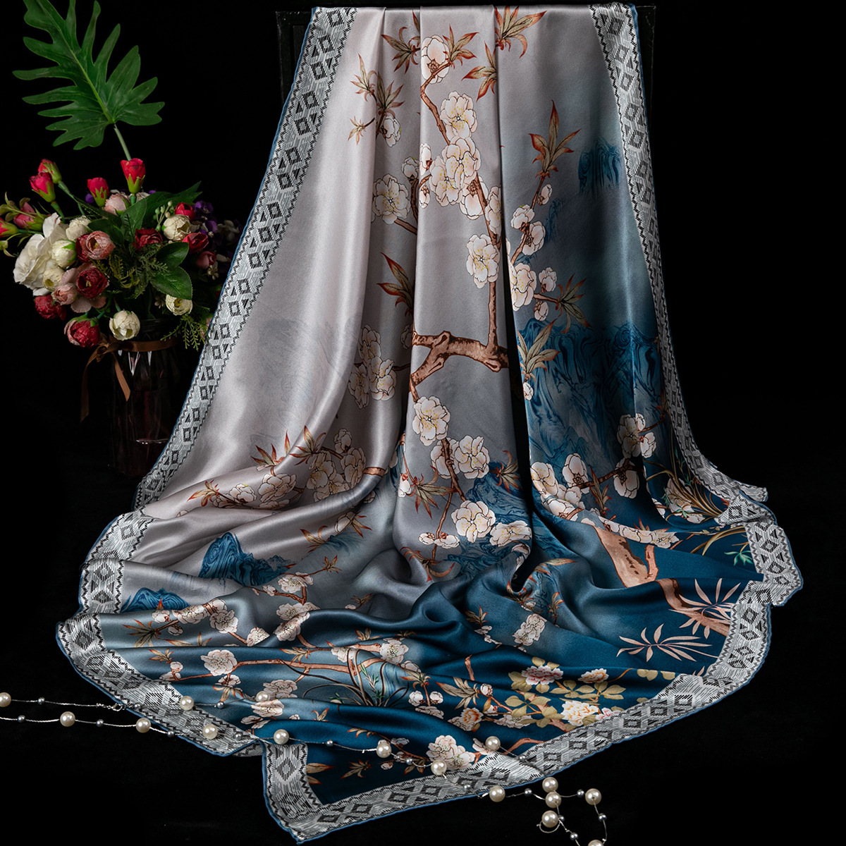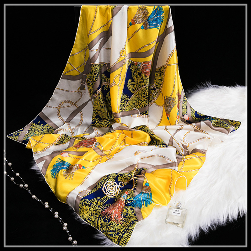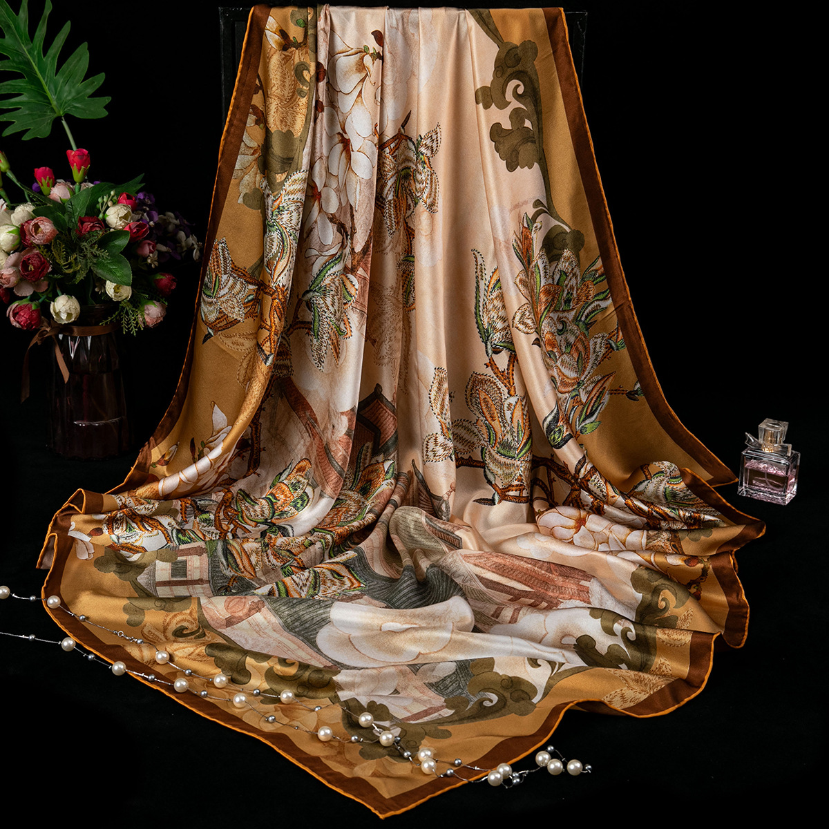 100% 실크 대형 사각 스카프, 여성 연예인 스타일, 봄 여름 다용도, 뽕나무 실크 스카프, 숄, 아우터웨어