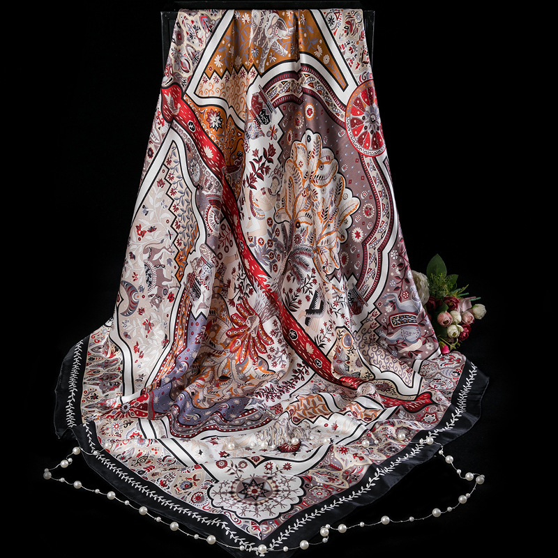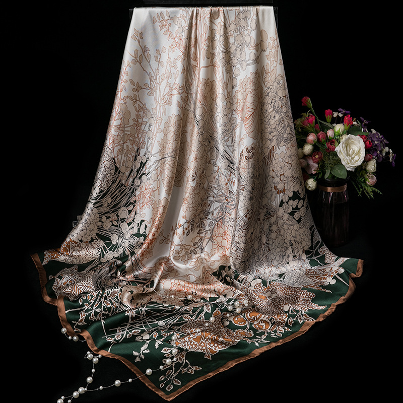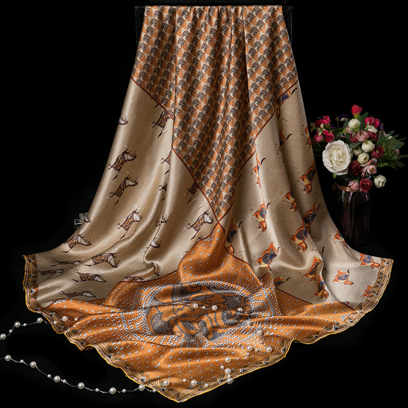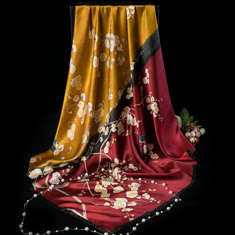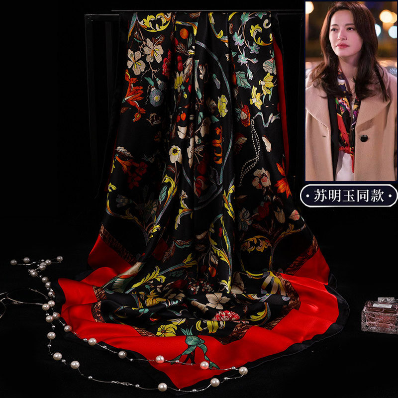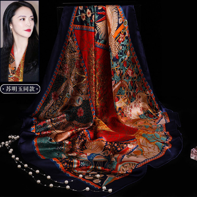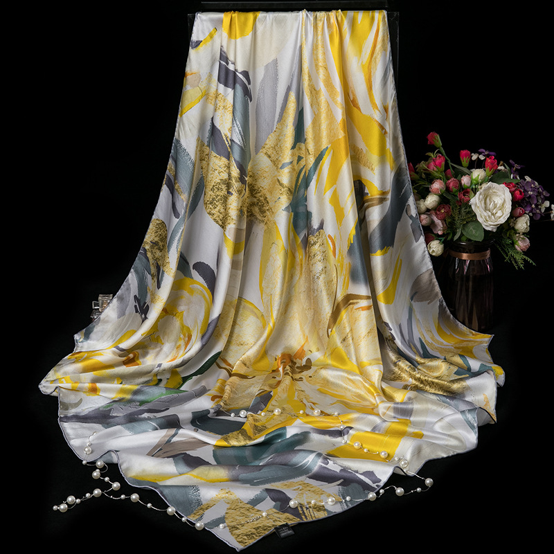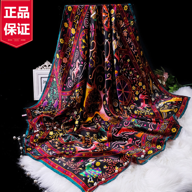 100% 실크 대형 사각 스카프, 여성 연예인 스타일, 봄 여름 다용도, 뽕나무 실크 스카프, 숄, 아우터웨어