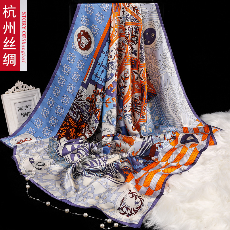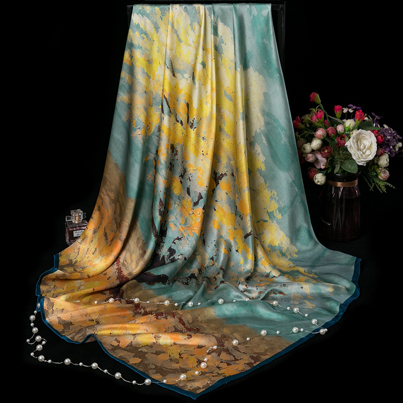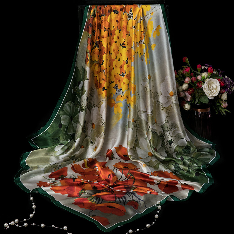 100% 실크 대형 사각 스카프, 여성 연예인 스타일, 봄 여름 다용도, 뽕나무 실크 스카프, 숄, 아우터웨어스토어 가기