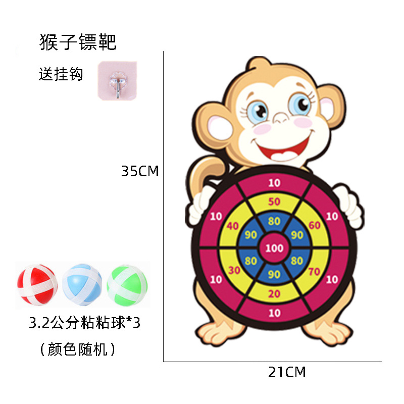 • 42cm 원숭이 타겟 + 3 볼 (3.4cm 블로우 몰딩 볼) + 후크