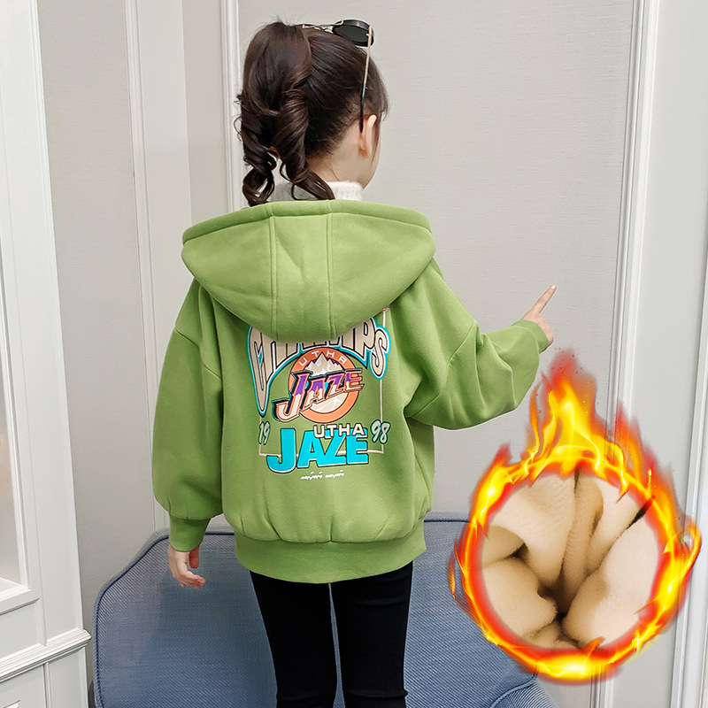 소녀 코트 2024 새로운 겨울 코트 두꺼운 어린이 기모 만화 스웨터 어린 소녀의 느슨한 후드 카디건스토어 가기