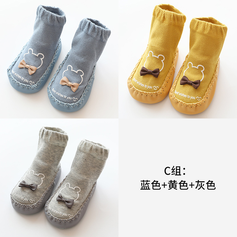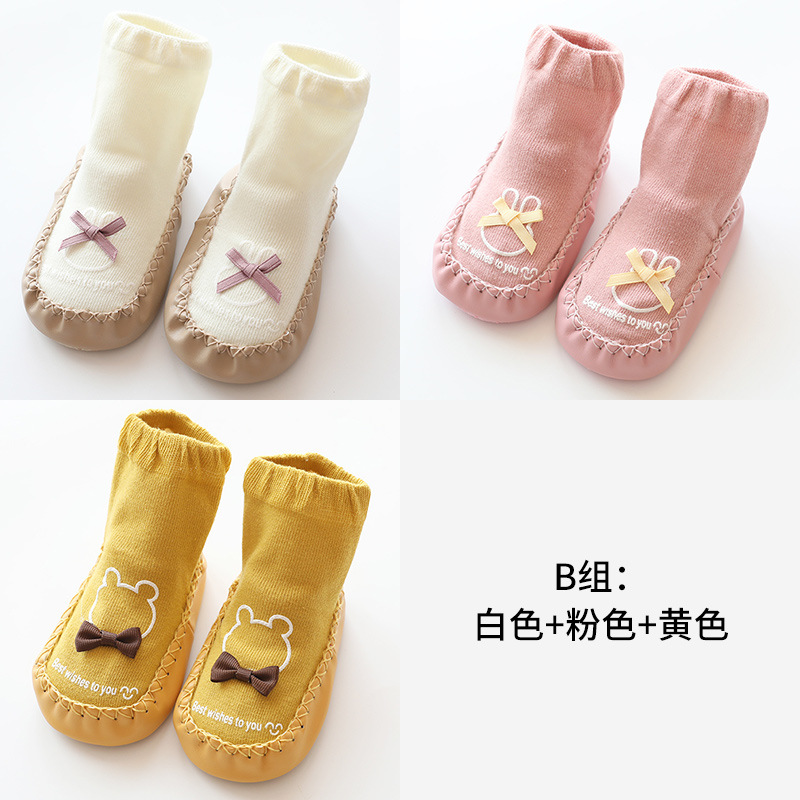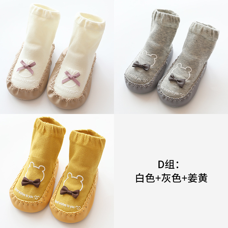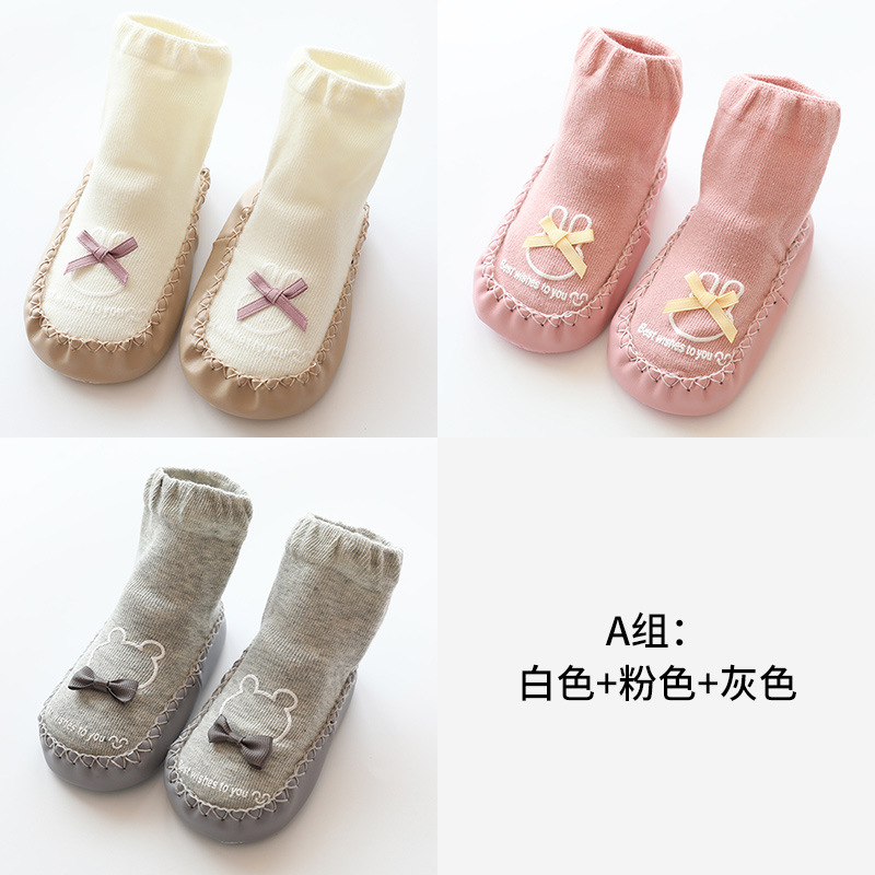 3켤레 세트 가을용 리본 가죽 밑창 신발 양말, 코마사 면 아기 바닥 양말, 무료 배송, 미끄럼 방지, 걸음마 연습용 부드러운 밑창