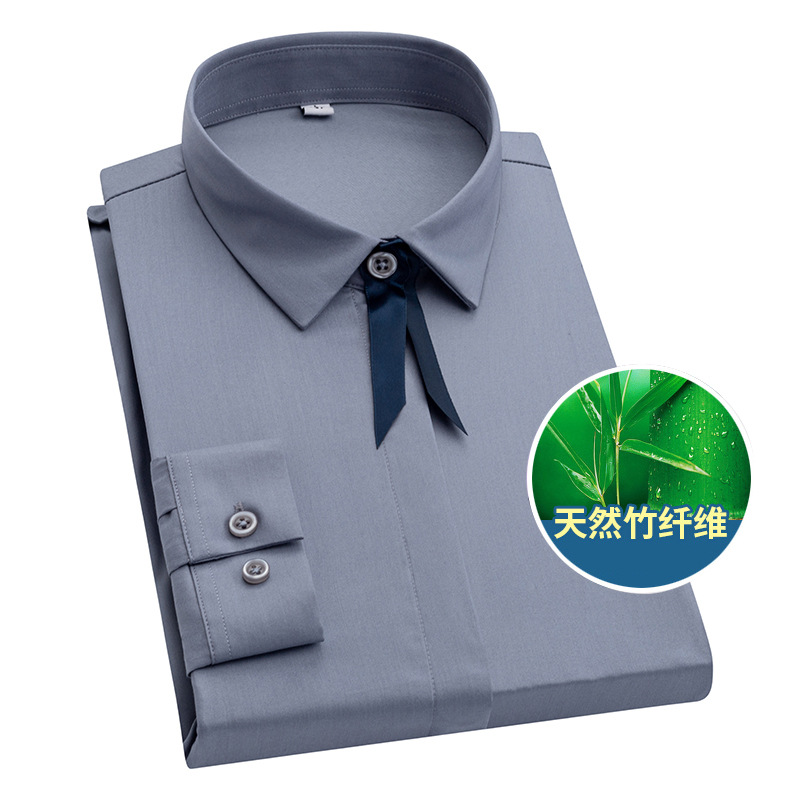 봄철 남녀공용 통근용 남성용 대나무 섬유 셔츠 캐주얼 비즈니스 전문직 보온 셔츠 긴팔 남성복