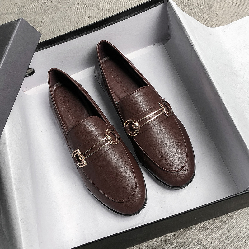 영국 스타일 복고풍 작은 가죽 신발 여성 2021 새로운 페달 로퍼 여성 플랫 신발 플러스 사이즈 41-43스토어 가기