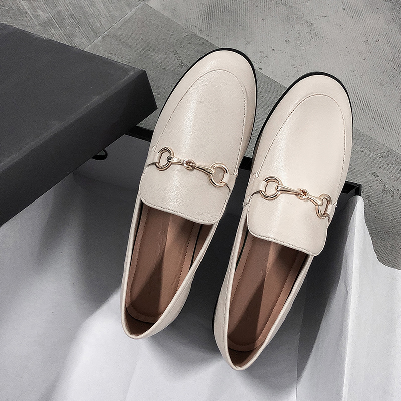 작은 가죽 신발 여성 영국 싱글 신발 2022 봄과 가을 새로운 다목적 슬립 온 플랫 바닥 복고풍 대형 여성 신발 41-43스토어 가기