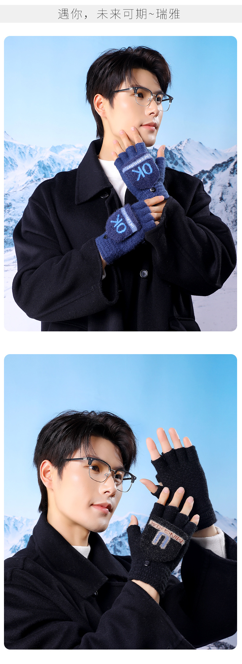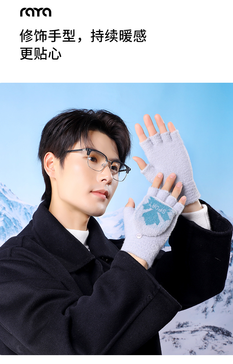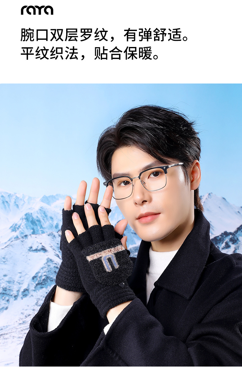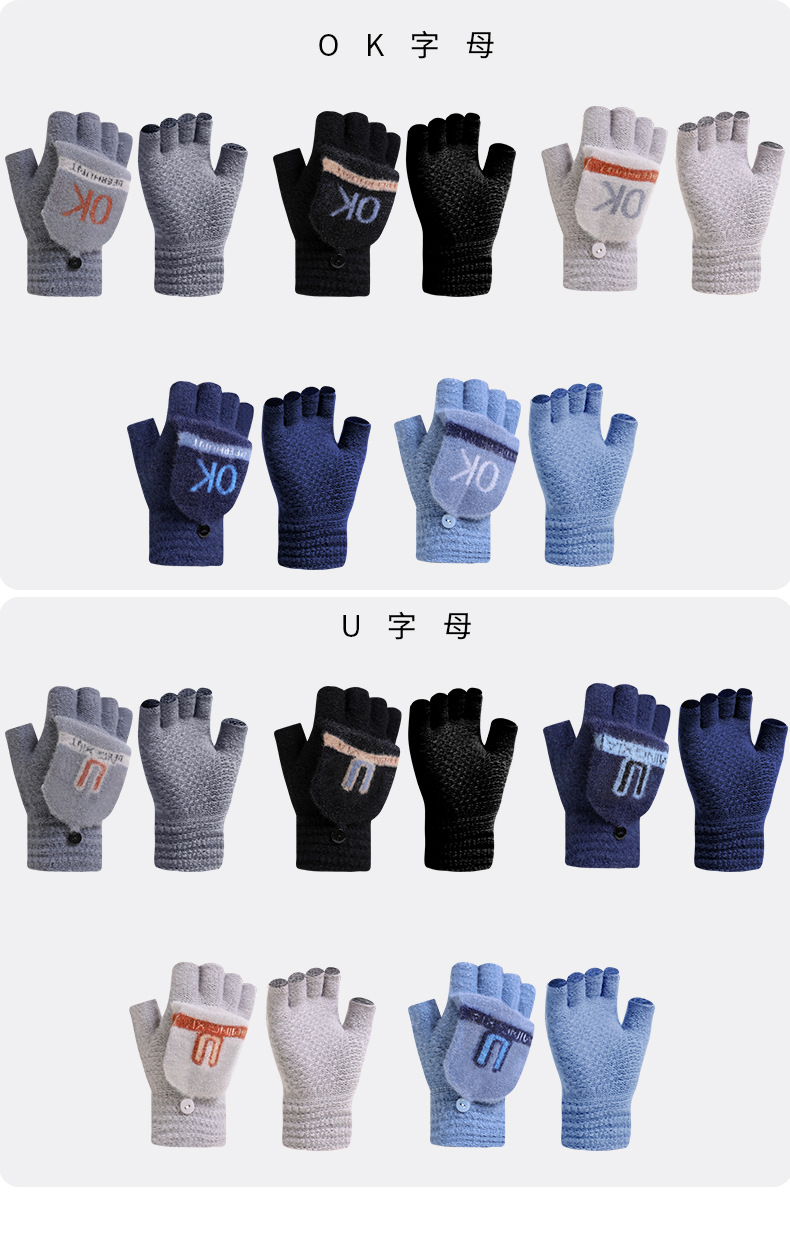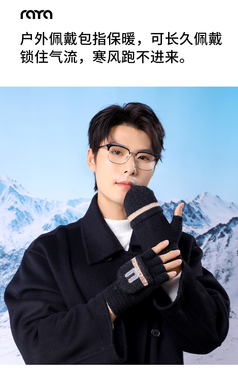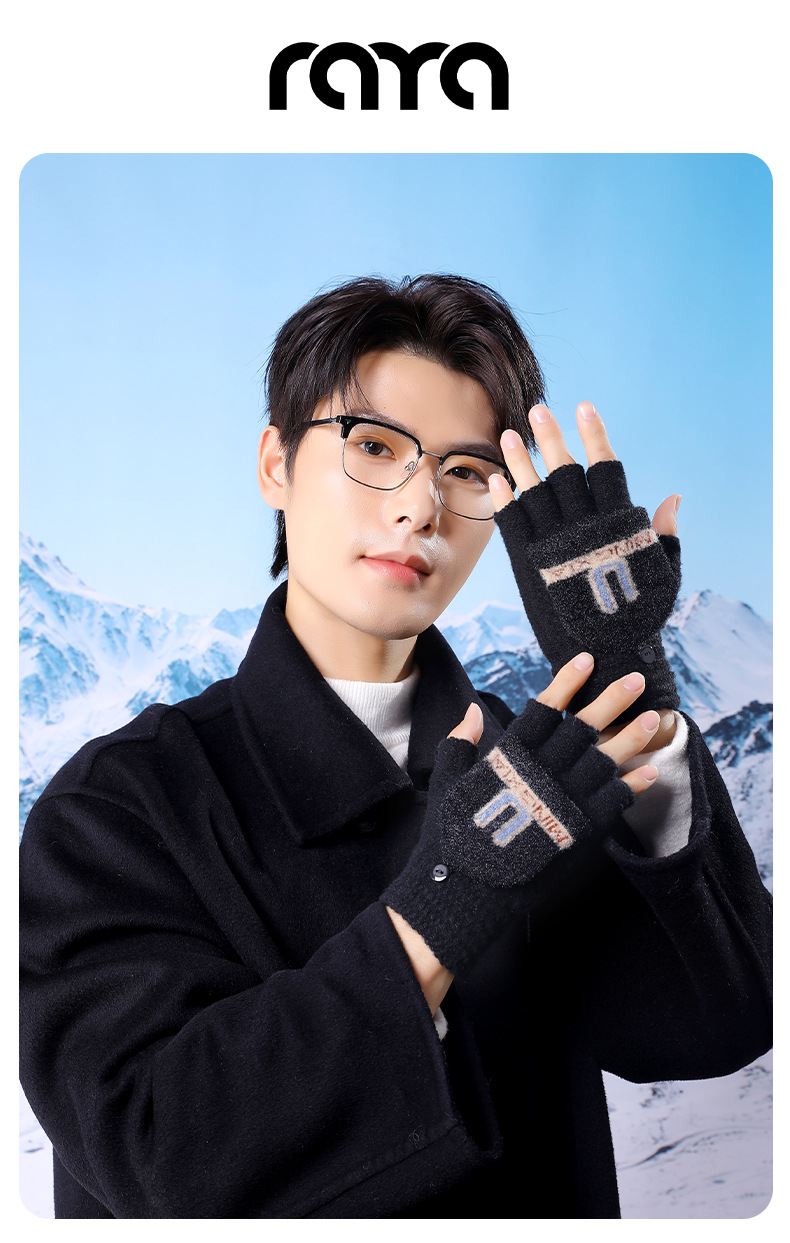 겨울 남성용 플립업 양손 장갑, 성인용 니트 반손가락 따뜻하고 두꺼운 장갑, 야외용 동결 방지 도매스토어 가기