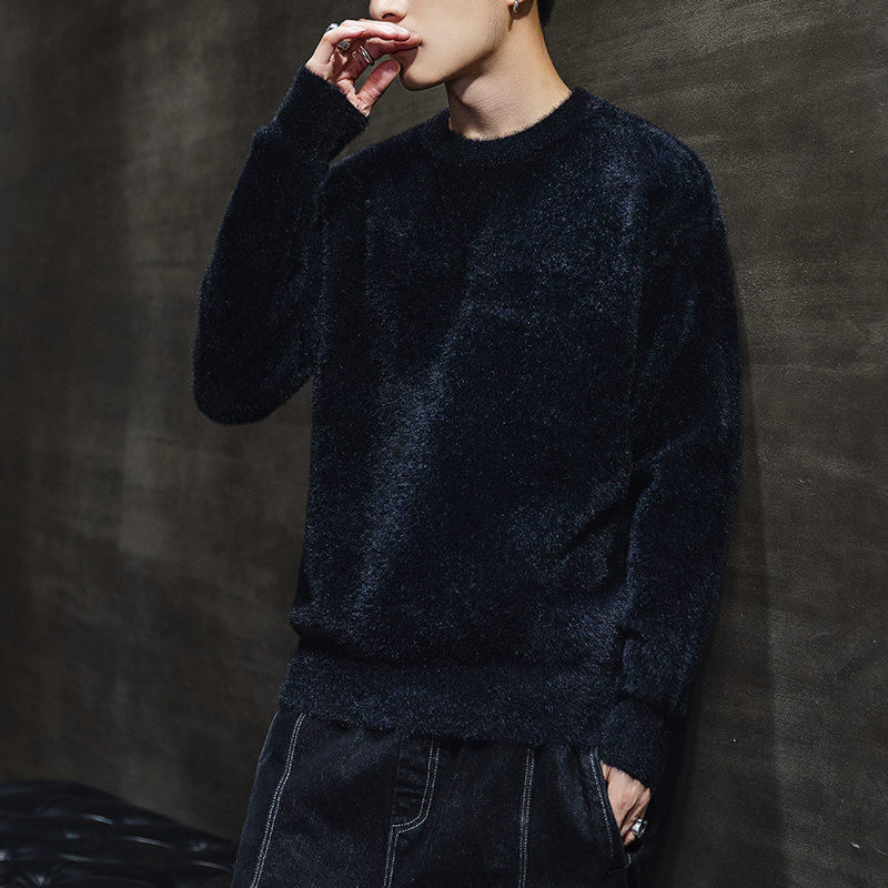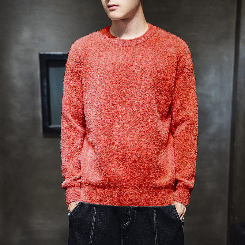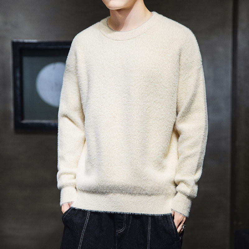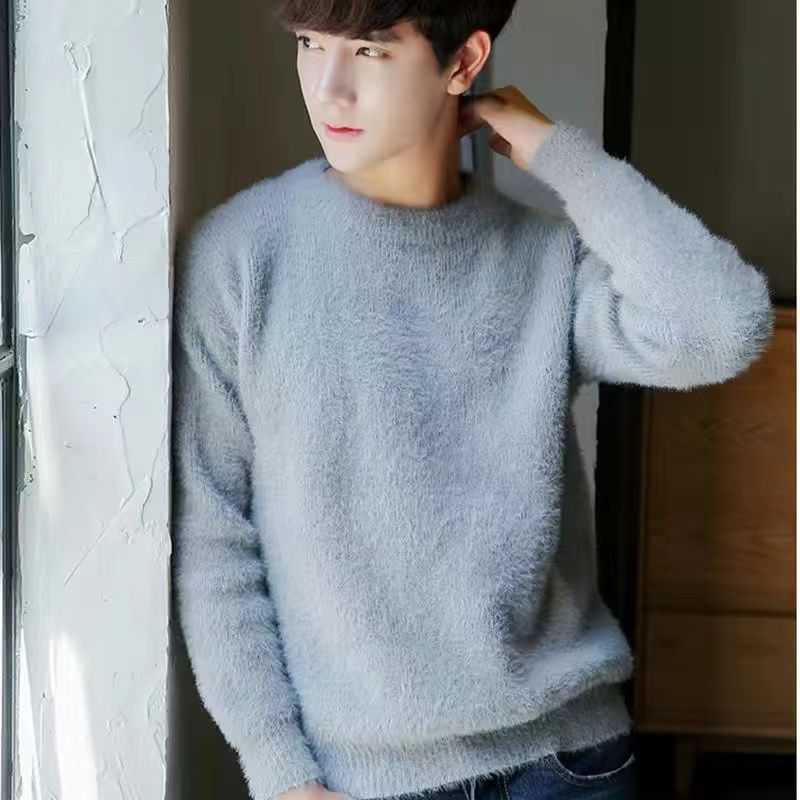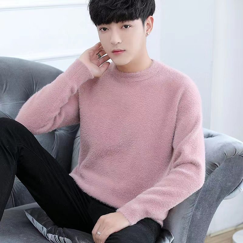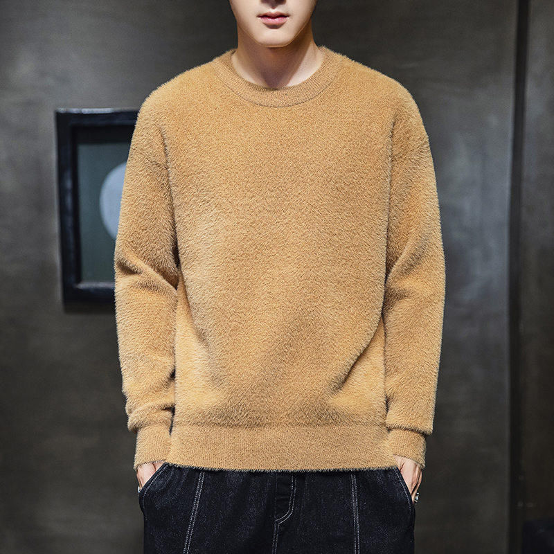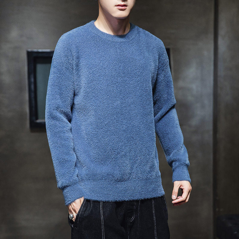 가을과 겨울 청소년 모조 밍크 캐시미어 스웨터 한국식베이스 니트 스웨터 라운드 넥 만능 스웨터 학생 코트스토어 가기