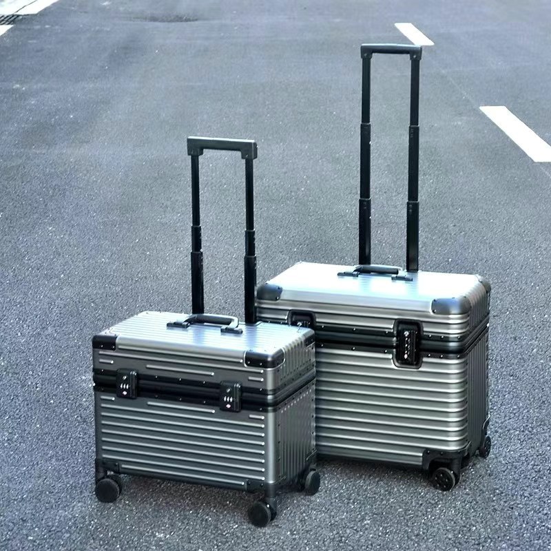 여성과 남성을위한 모든 알루미늄 마그네슘 합금 수하물 케이스 여행 사진 트롤리 케이스 범용 휠 카메라 탑승 케이스 금속 캡틴 케이스스토어 가기