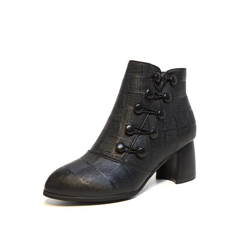폭발 두꺼운 뒤꿈치 부츠 편안한 복고풍 뾰족한 짧은 부츠 플러스 사이즈 숙녀 국경 해외 무역 제조 업체 도매스토어 가기