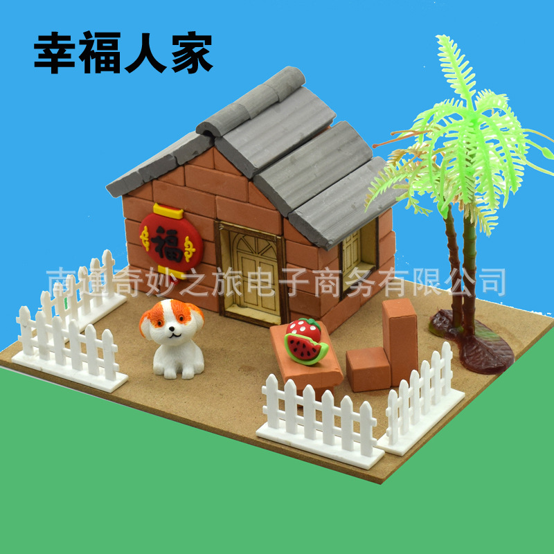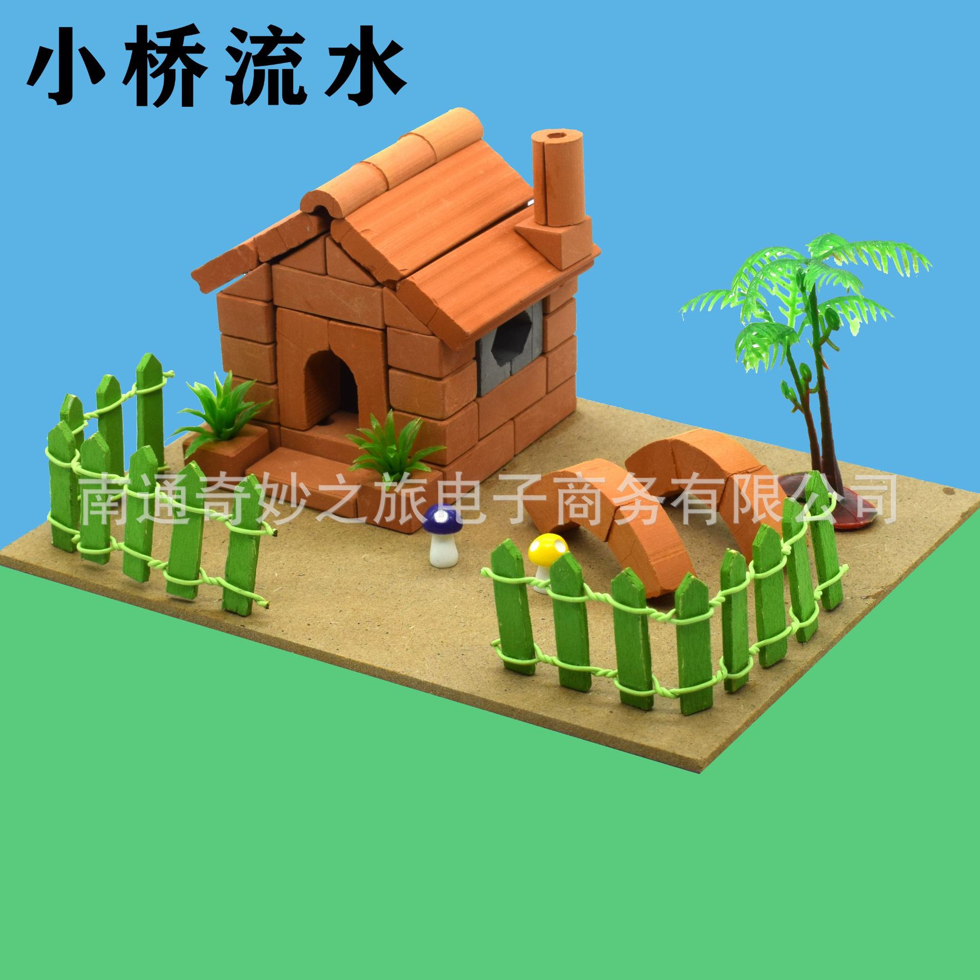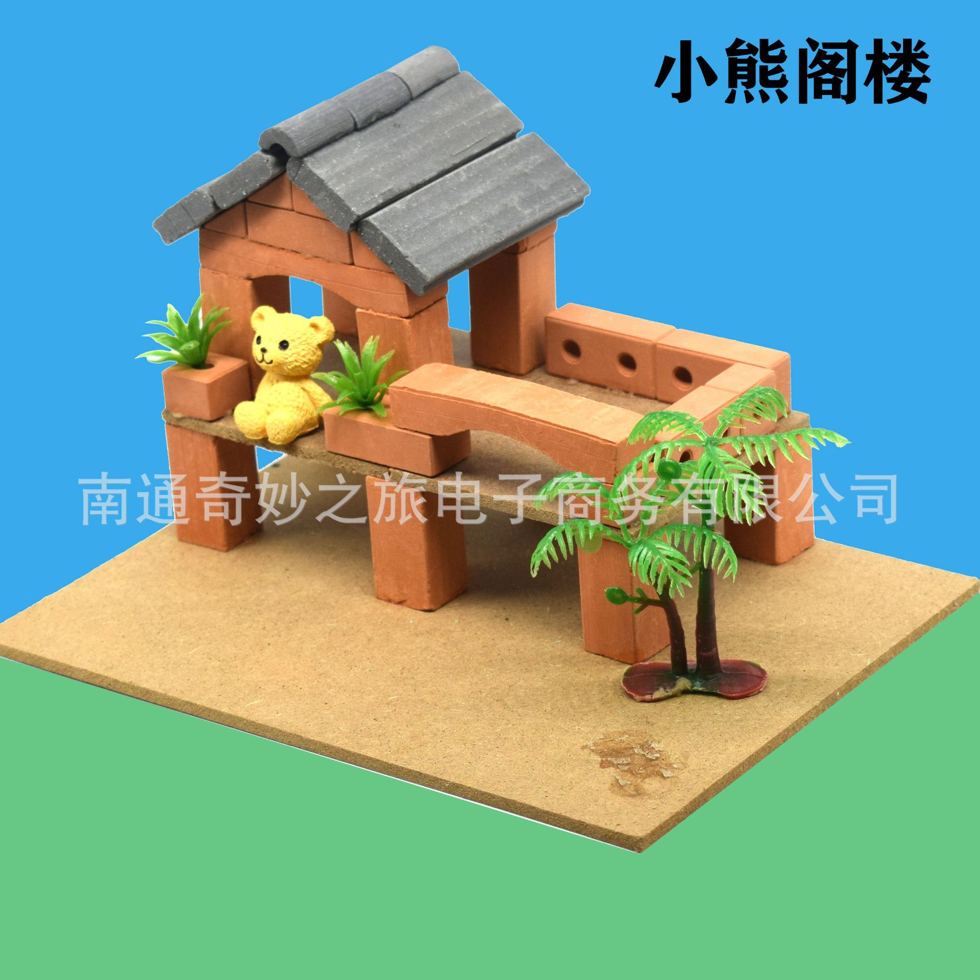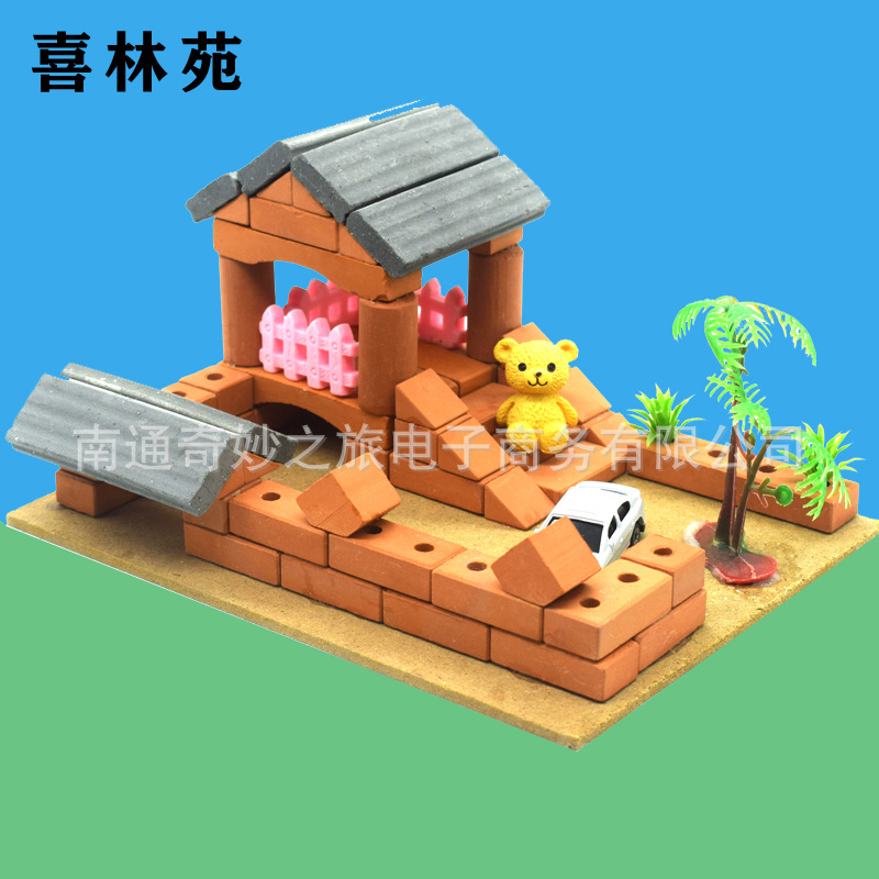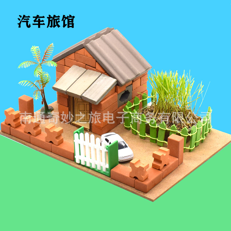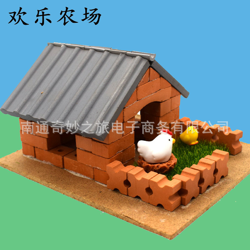 작은 벽돌공 모델 벽돌 블록 장난감 어린이 수제 DIY 조립 작은 집 건축 미니 모델