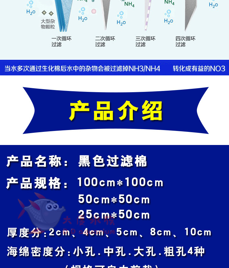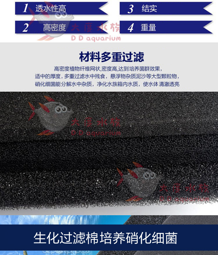 Xinyou 생화학 코튼 블랙 필터 면 어항 그물 수족관 필터 재료 농축 고밀도 스폰지스토어 가기