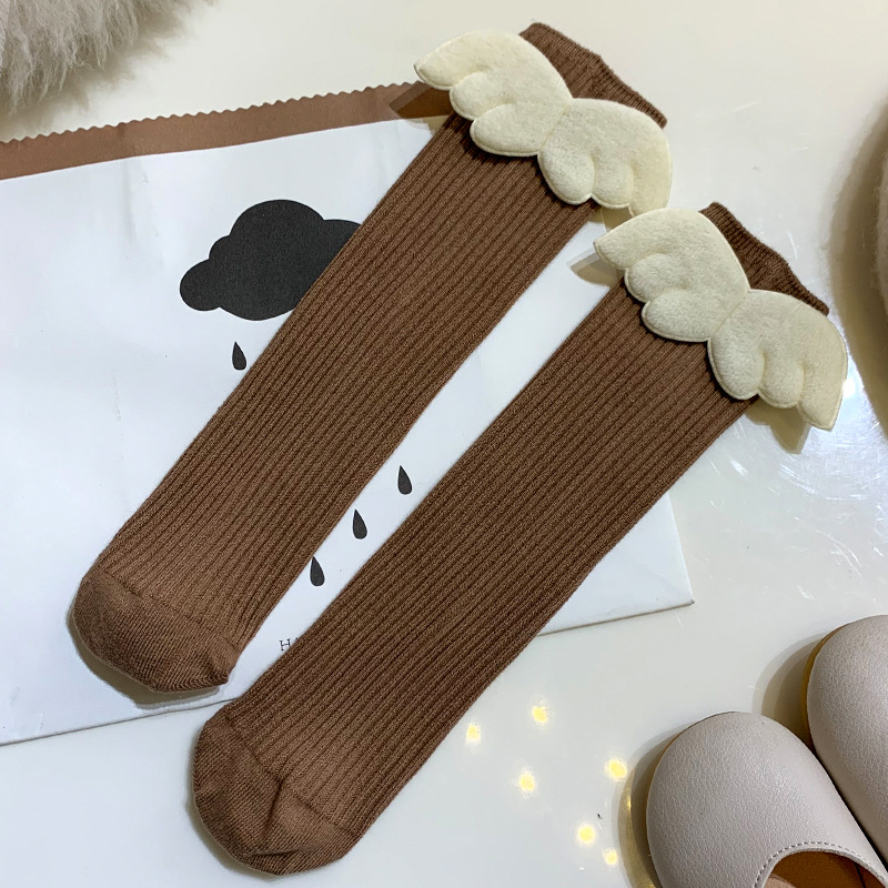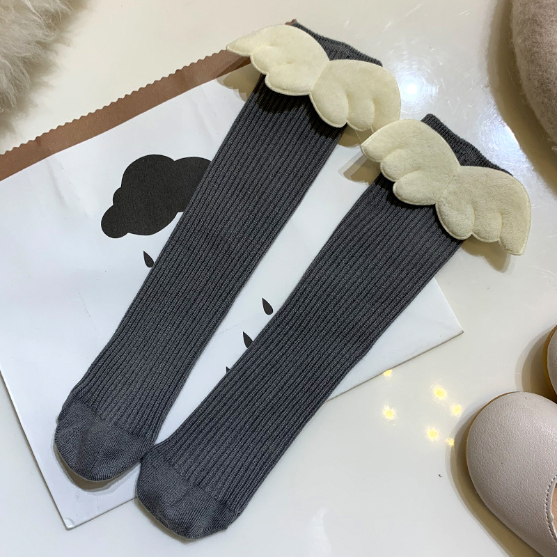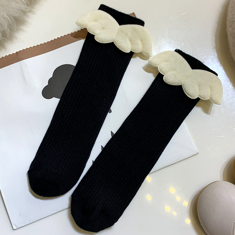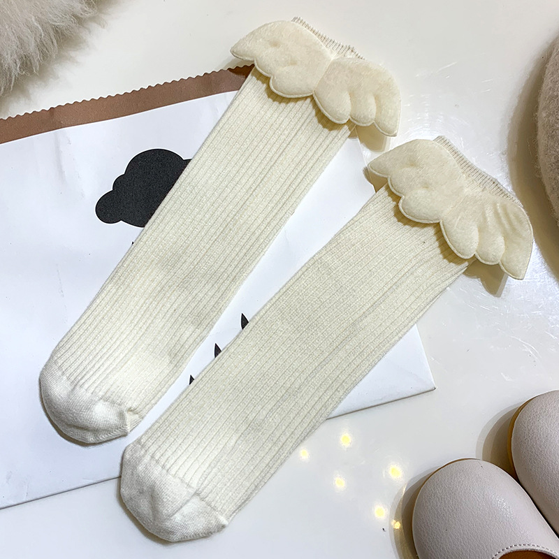 어린이용 신상 중목 양말 가을 겨울 단색 스트레이트 양말 수제 천사 날개 줄무늬 어린이 양말 도매 여아용