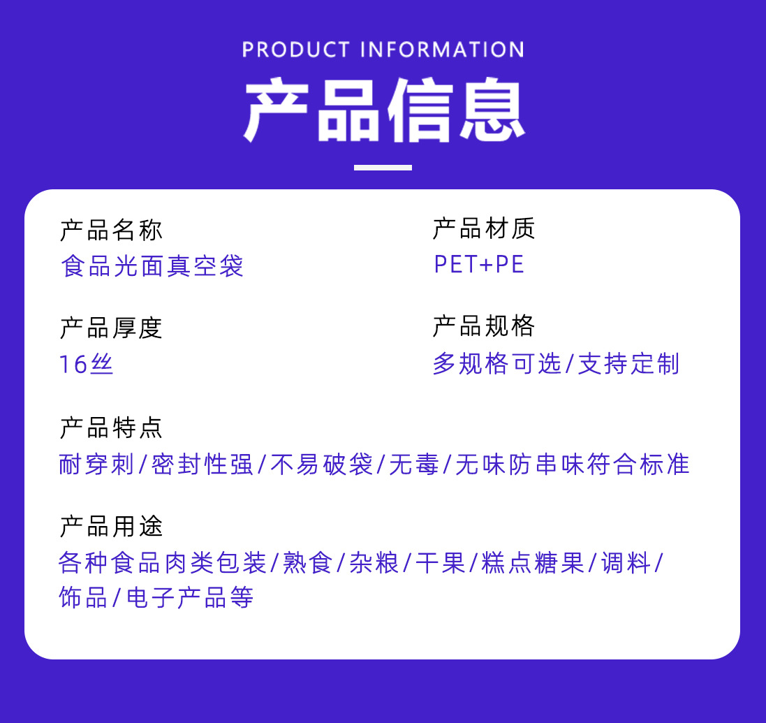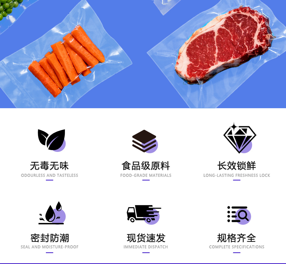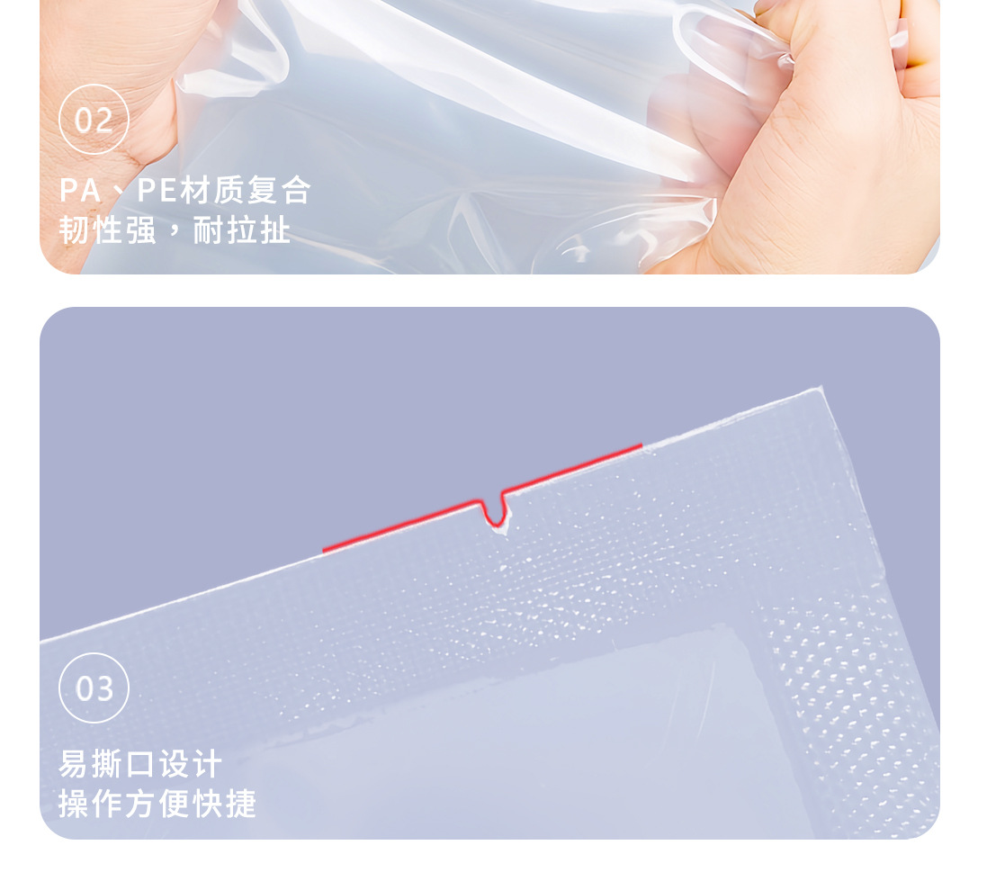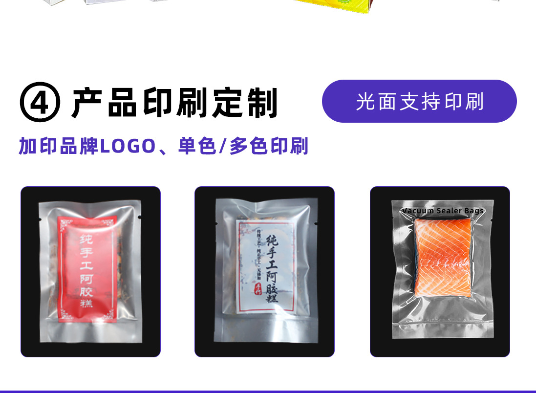 광택이 있는 평면 투명 삼면 밀봉 진공 식품 포장 백 냉동 조리식품 진공 플라스틱 밀봉 상업용 포장 백스토어 가기