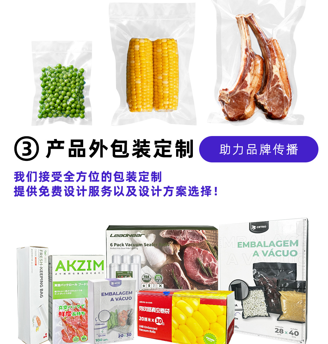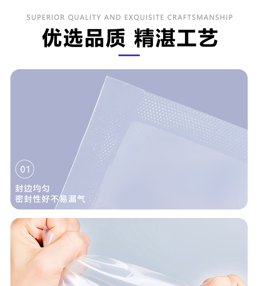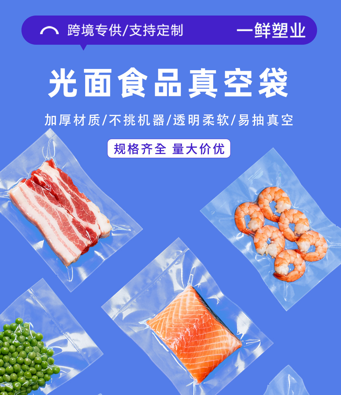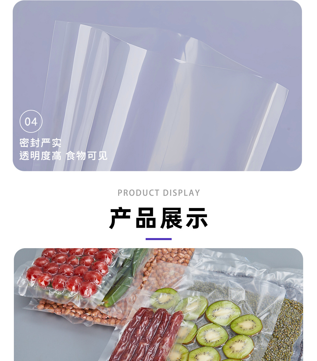 광택이 있는 평면 투명 삼면 밀봉 진공 식품 포장 백 냉동 조리식품 진공 플라스틱 밀봉 상업용 포장 백스토어 가기