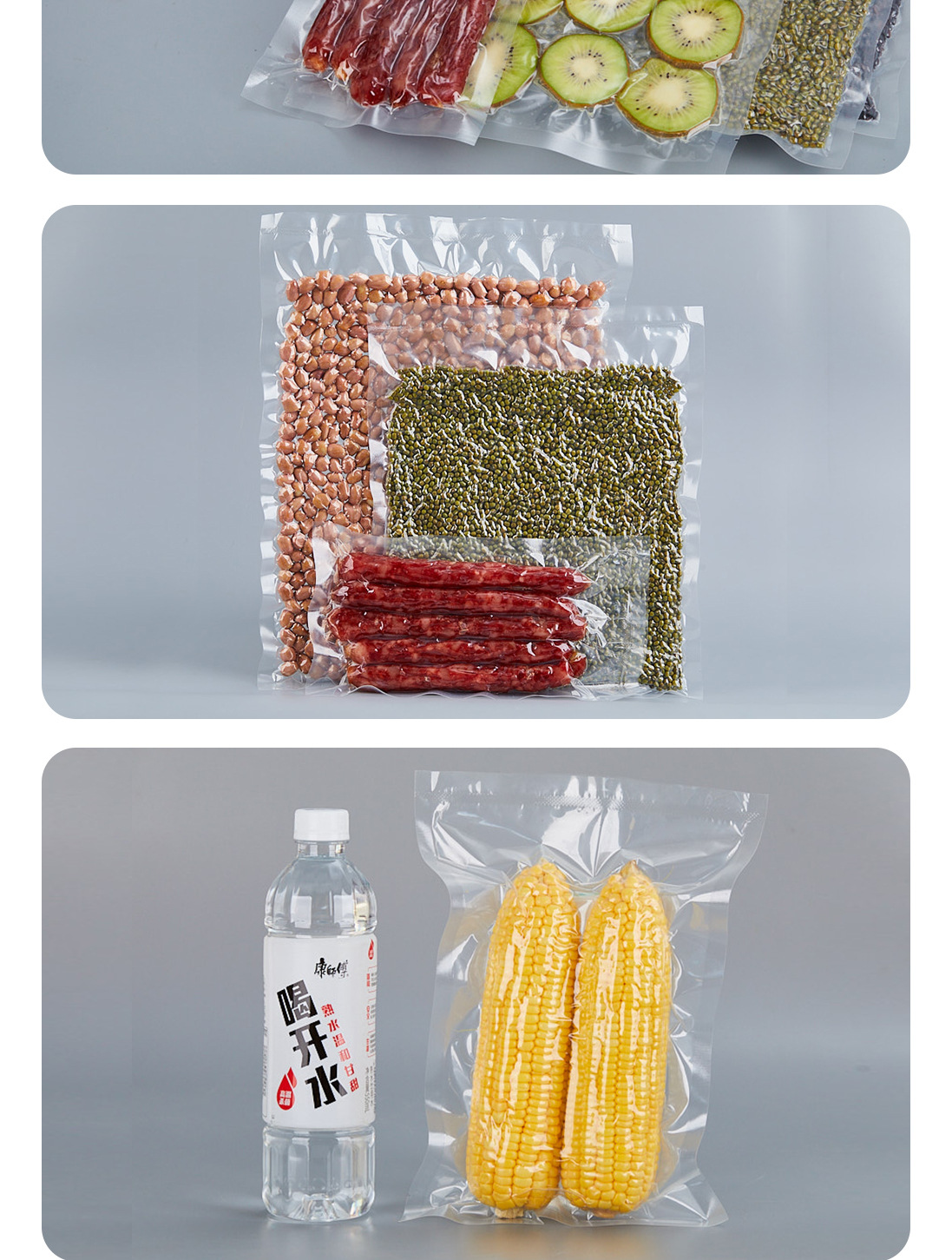 광택이 있는 평면 투명 삼면 밀봉 진공 식품 포장 백 냉동 조리식품 진공 플라스틱 밀봉 상업용 포장 백