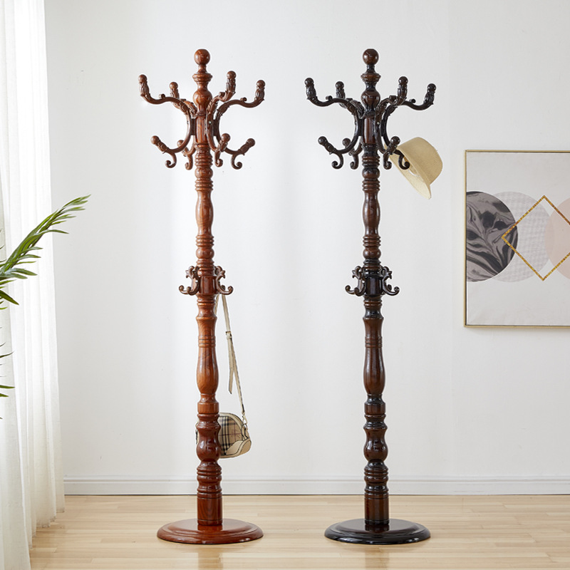 Shengtian 유럽 스타일 단단한 나무 바닥 코트 랙 로비 침실 입구 왁스 나무 보관 랙 창조적 인 바닥 걸이