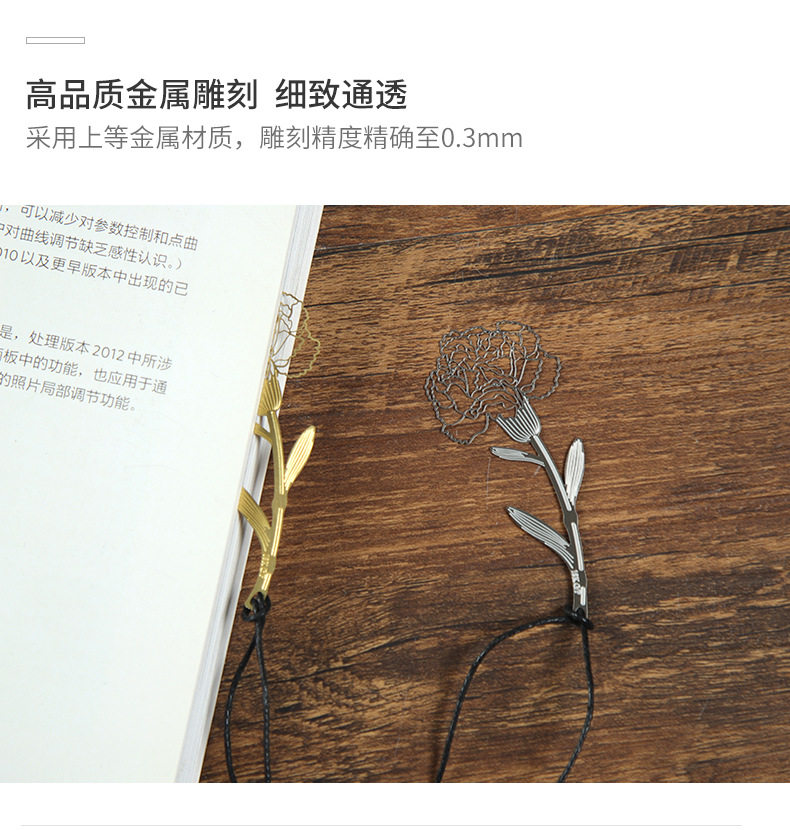 금속 장미 책갈피 황동 중공 카네이션 책갈피 귀여운 간단한 예술적 절묘한 술 창조적 인 W164