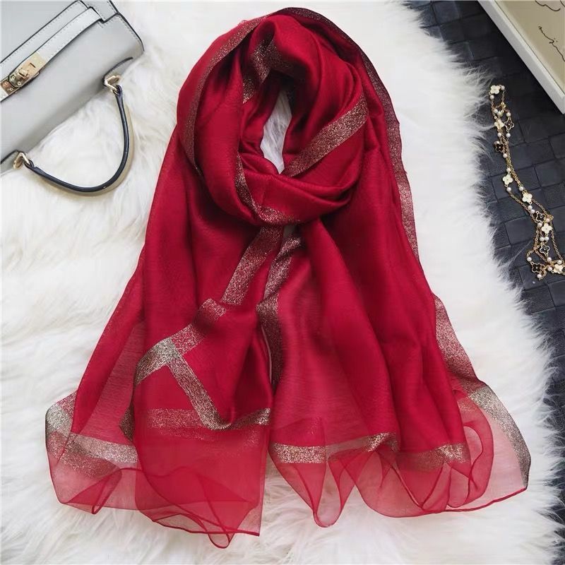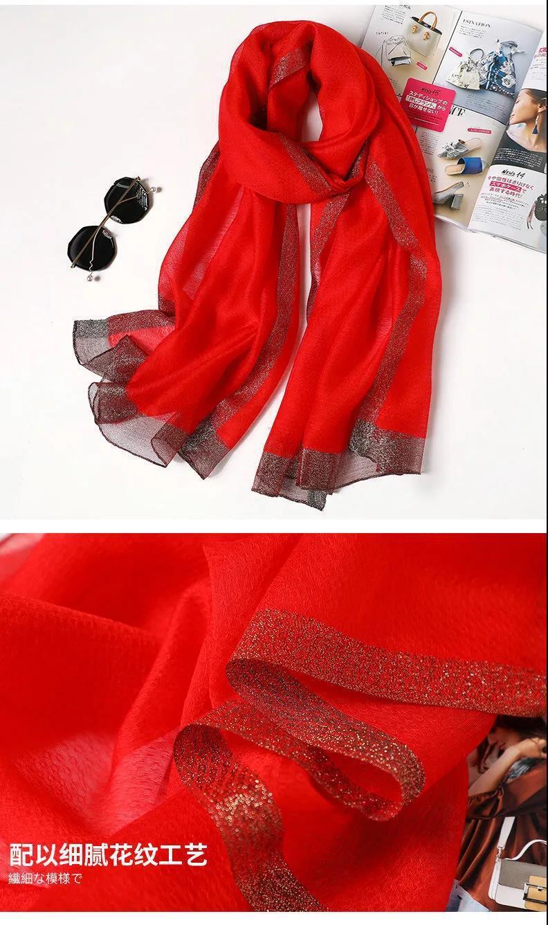 실크 스카프 여성용 봄과 가을 모든 매치 레드 여행 숄 중년 어머니를 위한 긴 실크 얇은 스카프스토어 가기