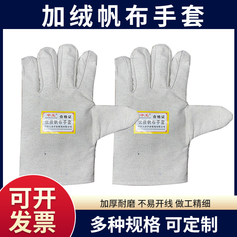 흰색 캔버스 장갑 두꺼운 재고 폴리에스터-면 기모 복합 내마모성 노동 보호 장갑 전기 용접 장갑 캔버스 장갑