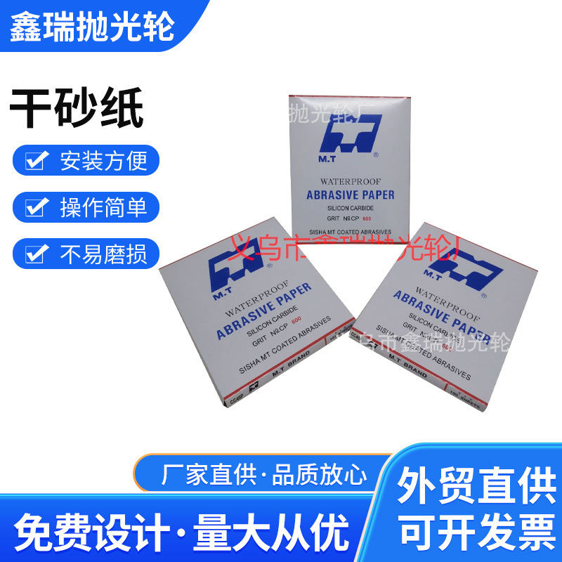 undefinedMT牌研磨水砂纸,来用优质矿石,采用静电植砂颗粒均匀,纸基柔软,千湿两用卷曲对折不开裂等优势,主要用于汽车制造不锈钢五金工具航空家具油漆电子塑胶精密内饰等行业的打磨与抛光