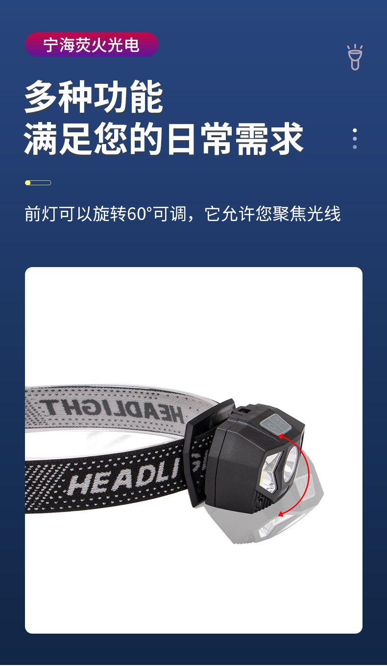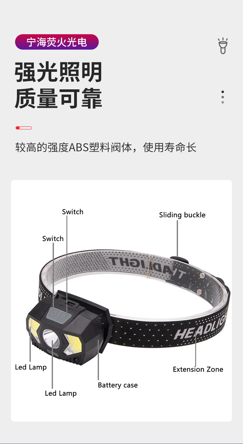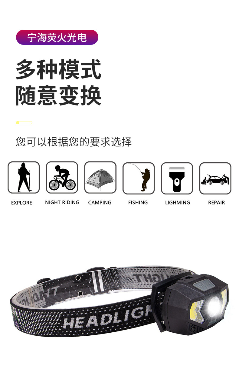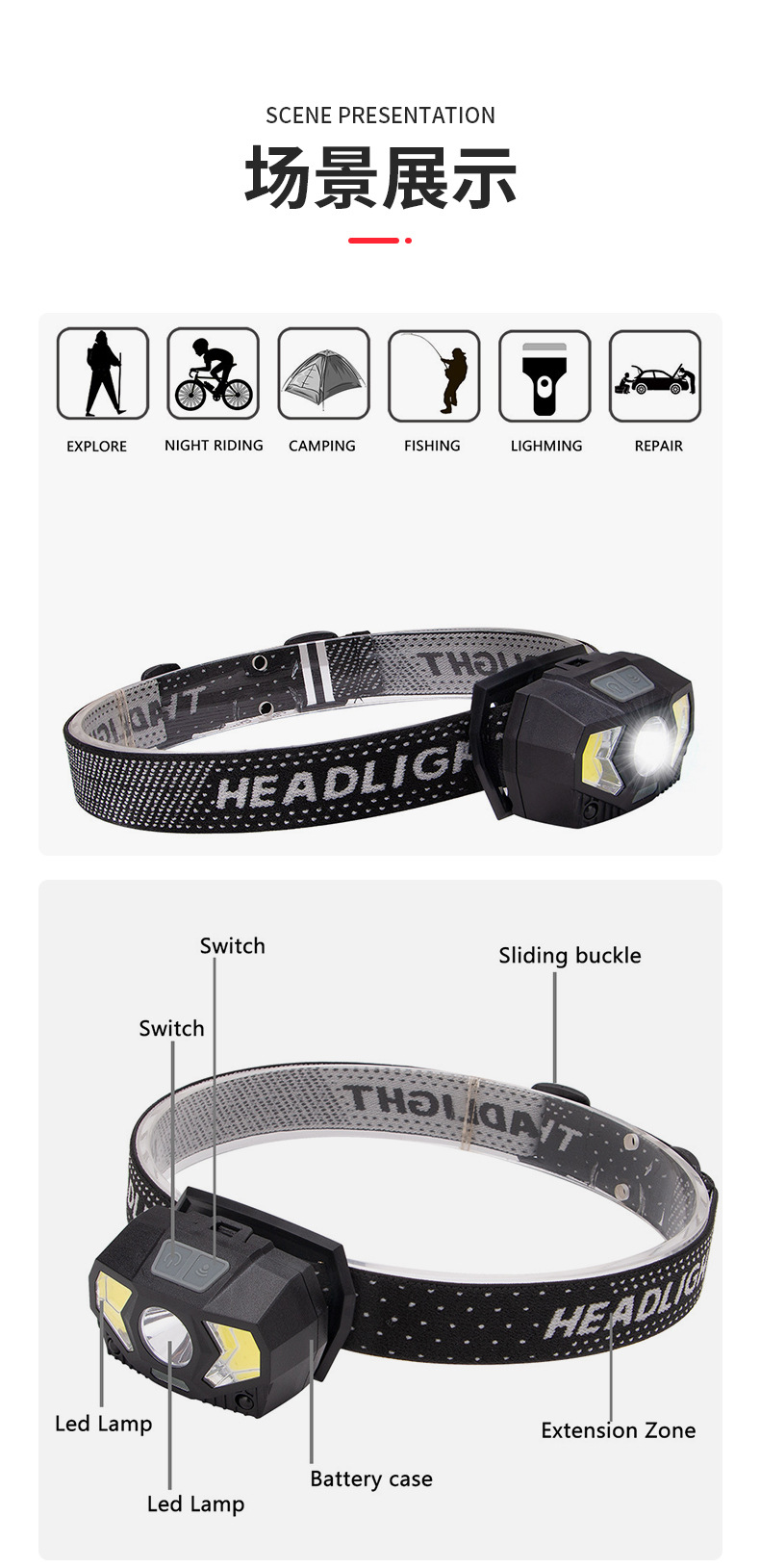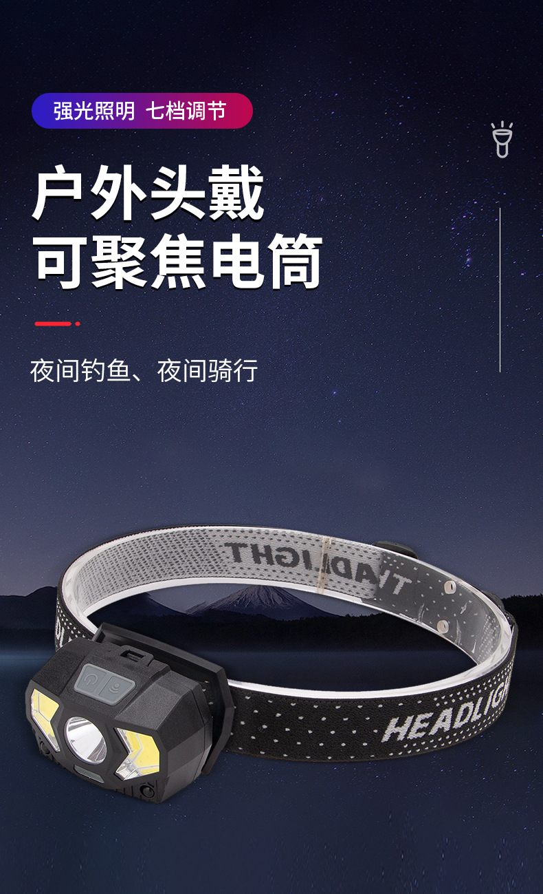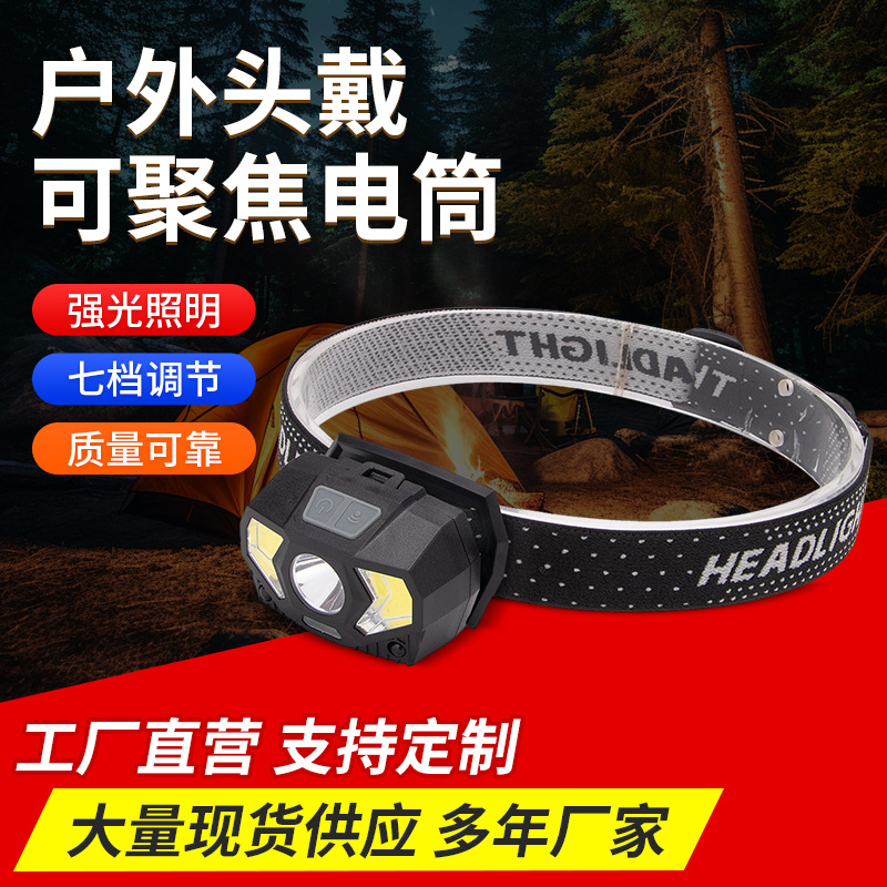 크로스 보더 새로운 ABS 헤드램프 COB + XPE 야외 헤드 착용 포커스 가능 손전등 7 단 강력한 조명 낚시 램프