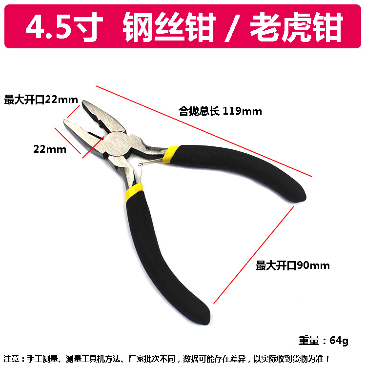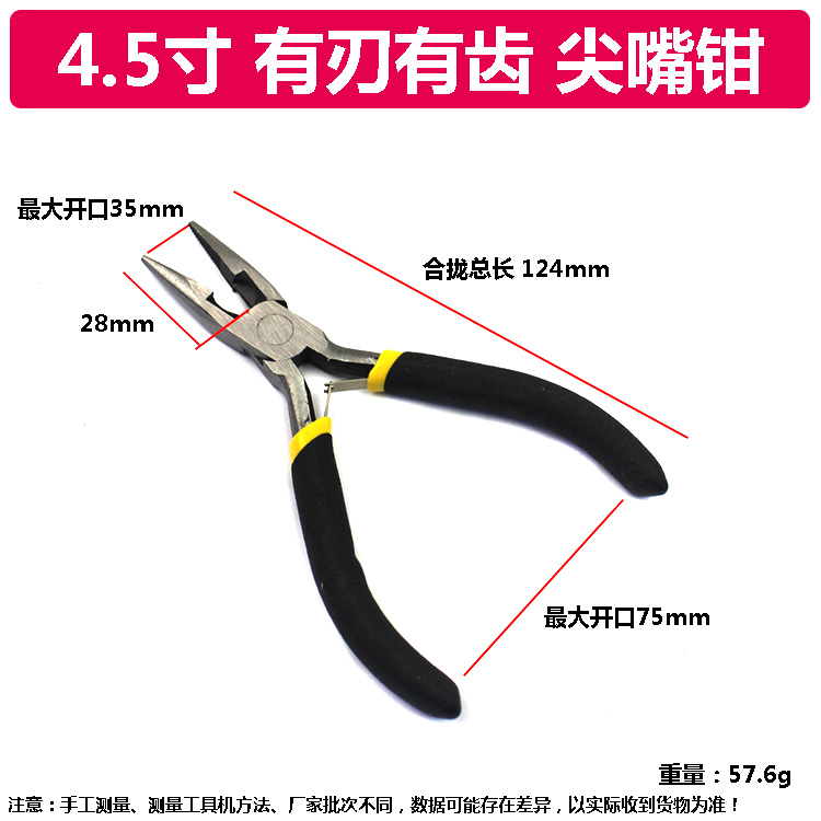 概要: 尖嘴钳老虎钳4寸手工饰品DIY迷你小钳子多功能钢丝钳斜口弯嘴钳子,量大从优,欢迎各地经销商前来采购。