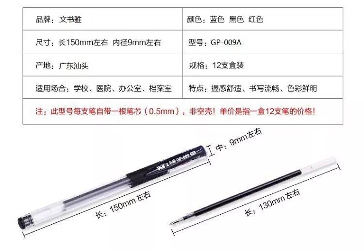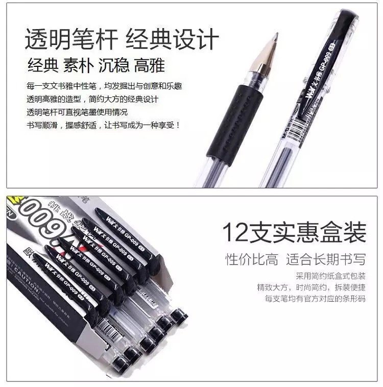 文书雅GP-009中性笔0.5mm 欧洲标准 黑色水笔