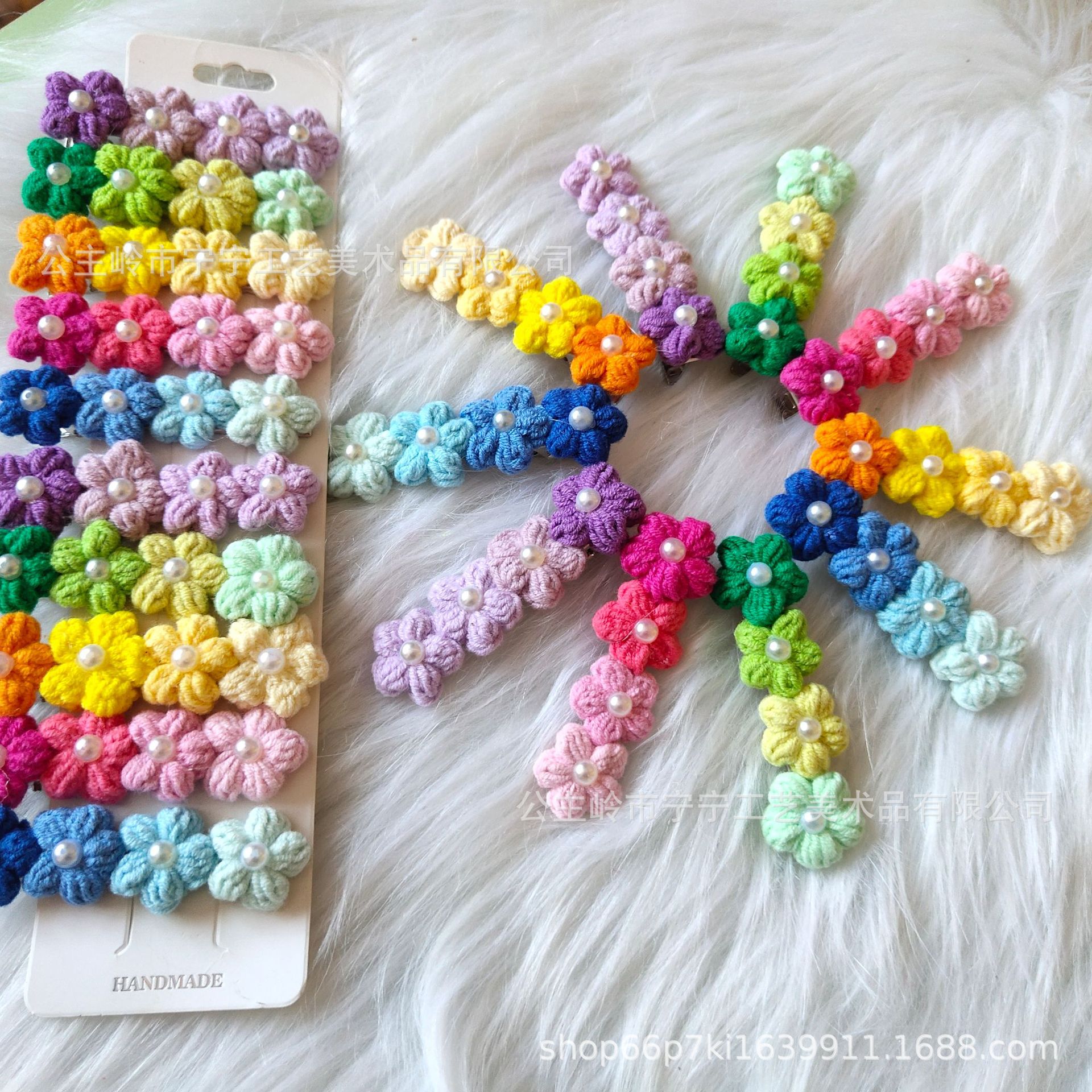 닝 수제 순수 수제 크로 셰 뜨개질 니트 머리핀 울 니트 머리핀 그라디언트 작은 꽃 클립