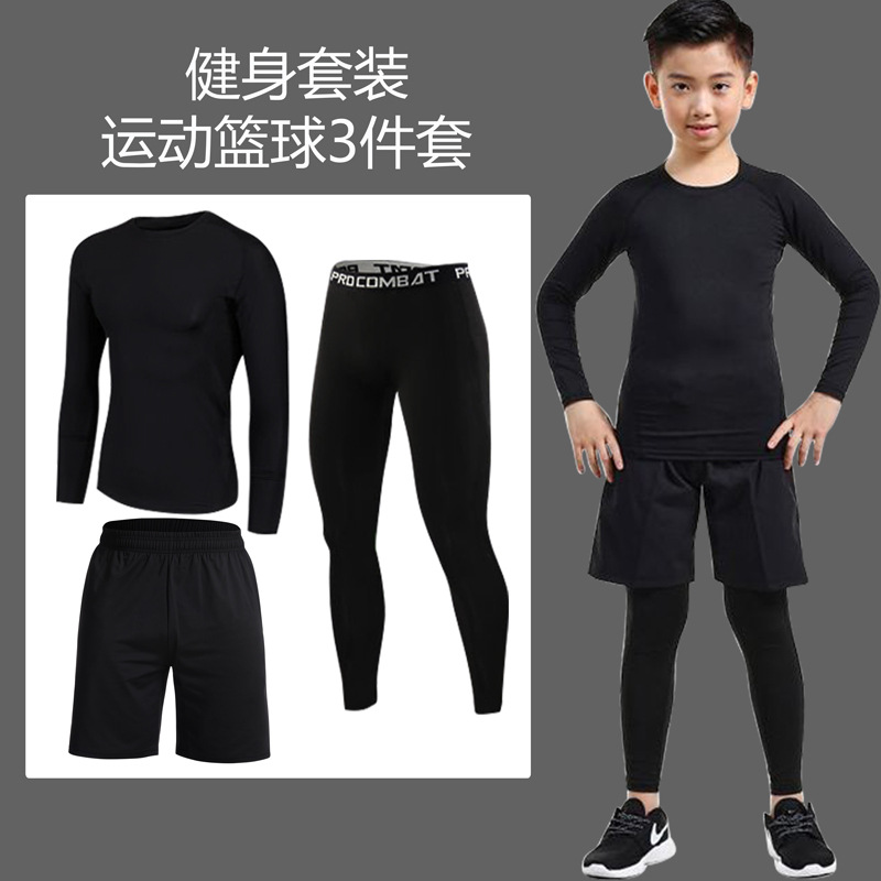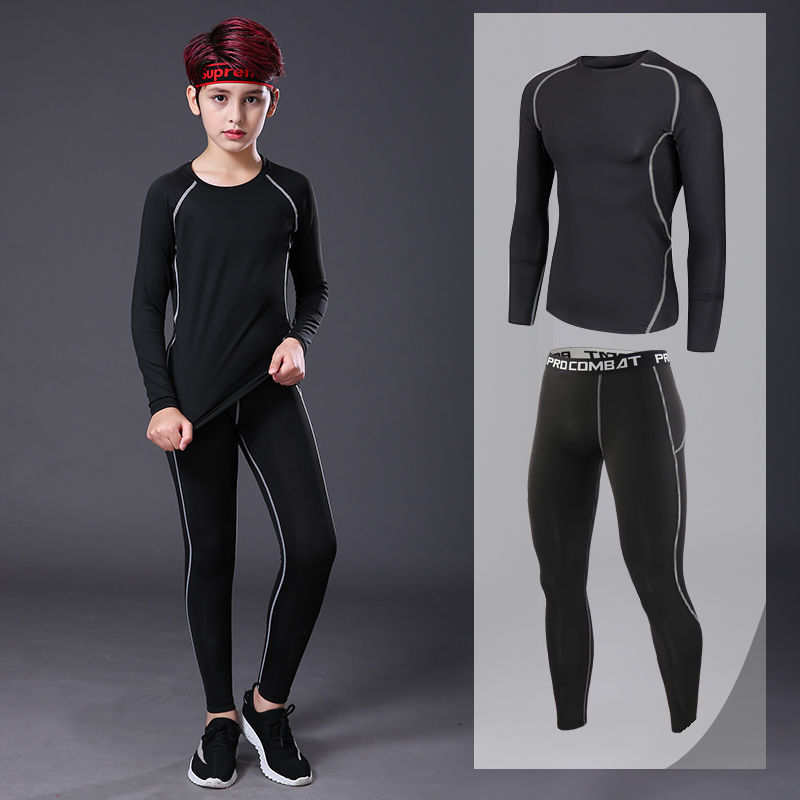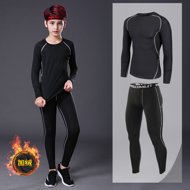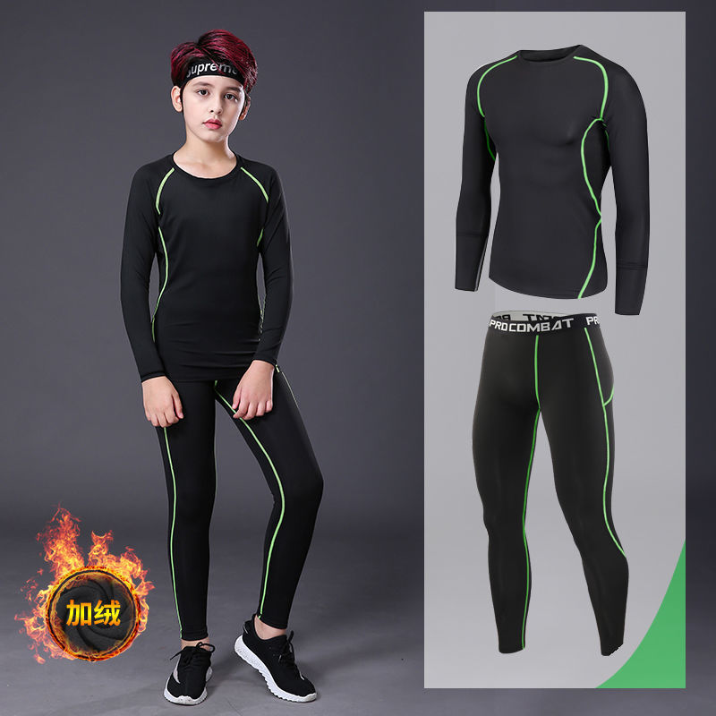어린이 스포츠 스타킹 남성 세트 가을과 겨울 농구 축구 훈련 옷 속건베이스 따뜻한 피트니스 옷 아동 의류
