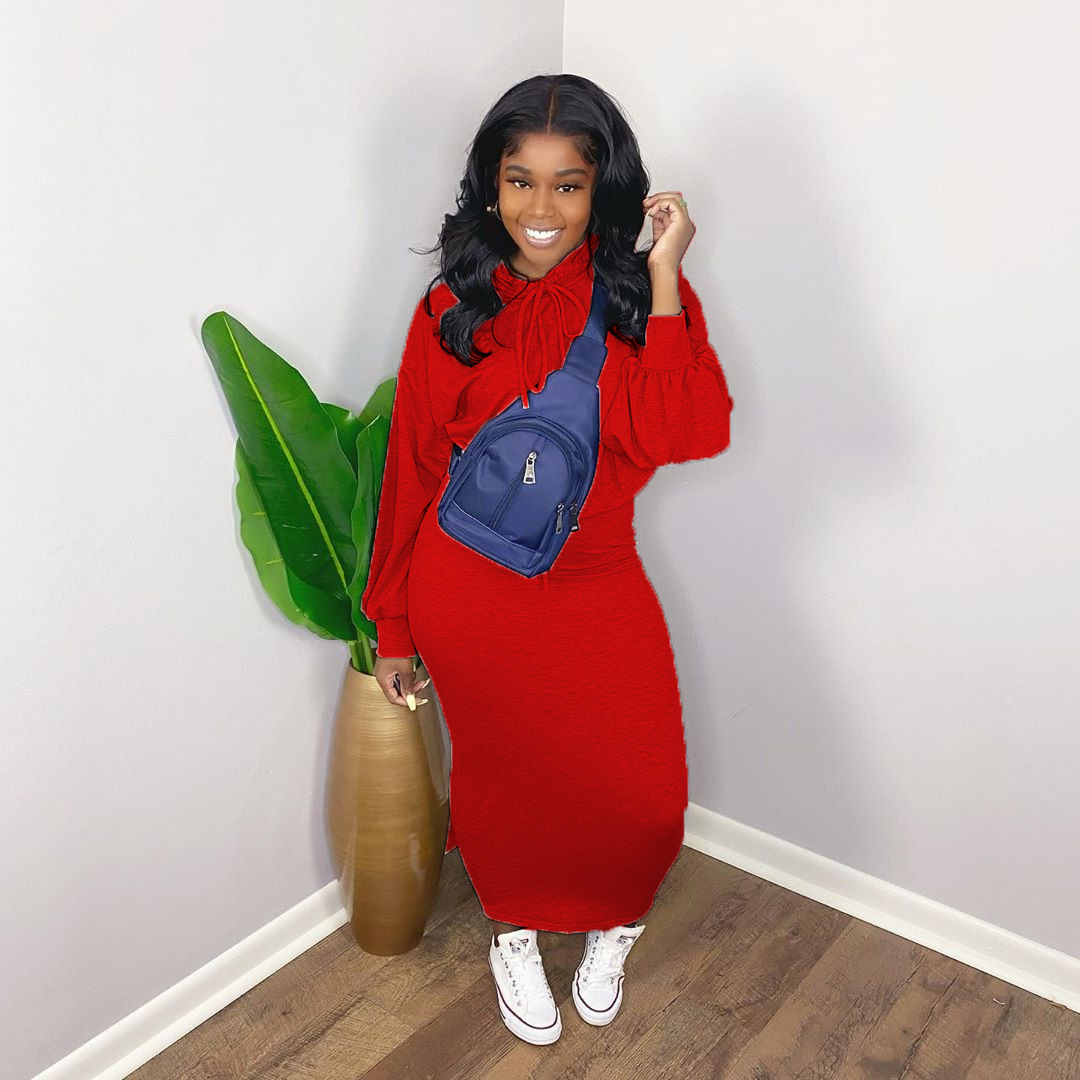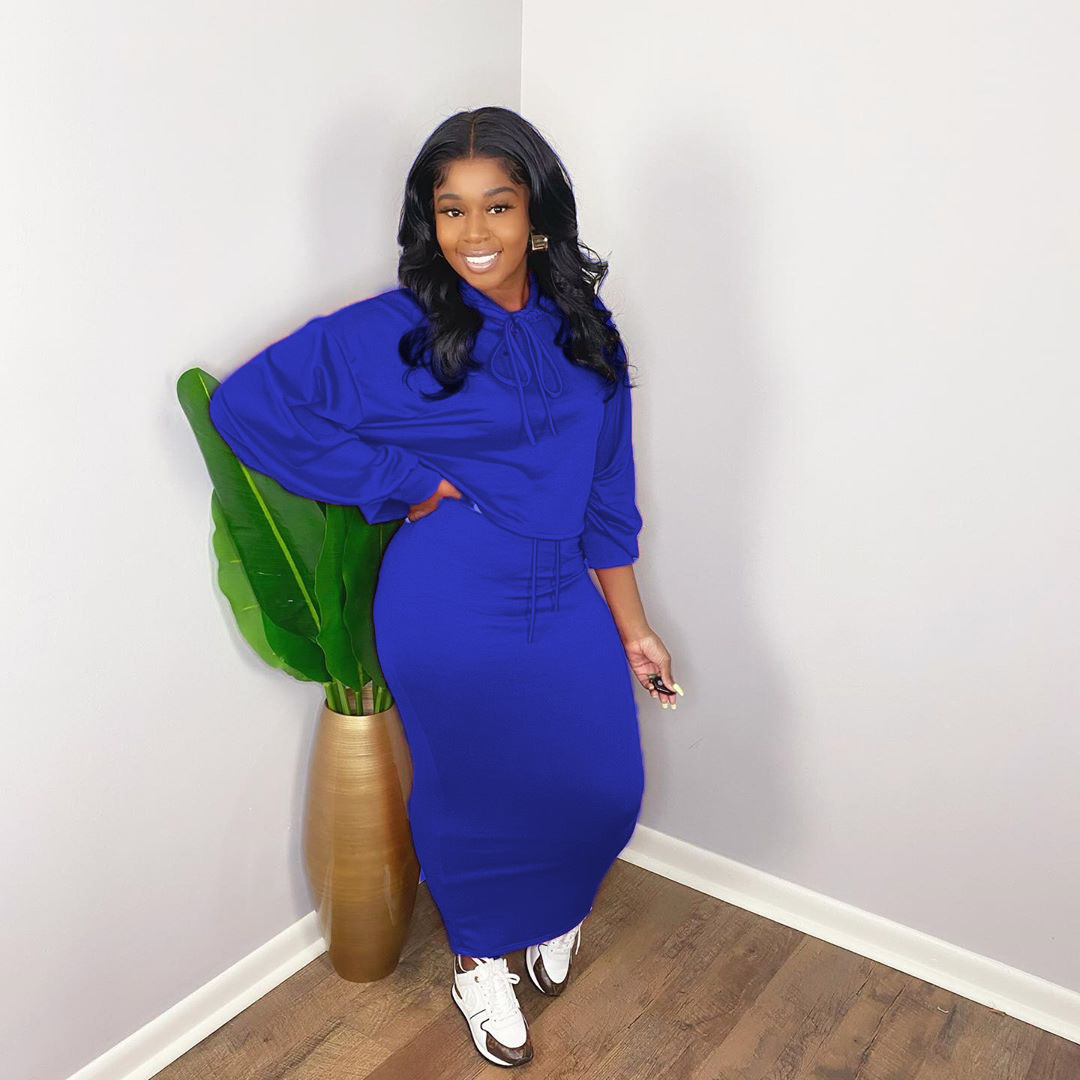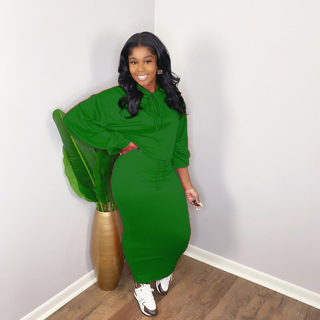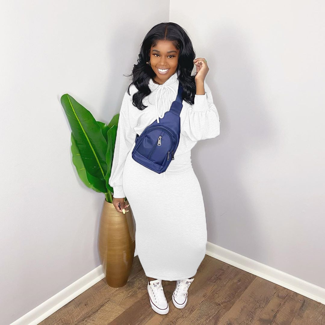 R6376 유럽과 미국 여성의 크로스 보더 소스 편지 인쇄 풀오버 후드 스웨터 원피스 스포츠 세트