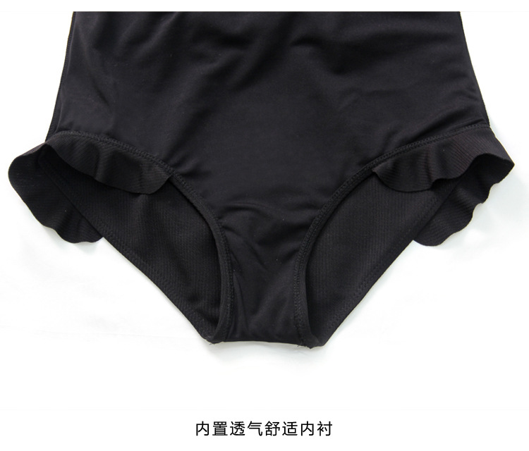 공장 직접 주름 장식 요정 팬 블랙 섹시한 등이없는 배꼽 커버 보수적 인 원피스 수영복 여성 온천 수영복스토어 가기
