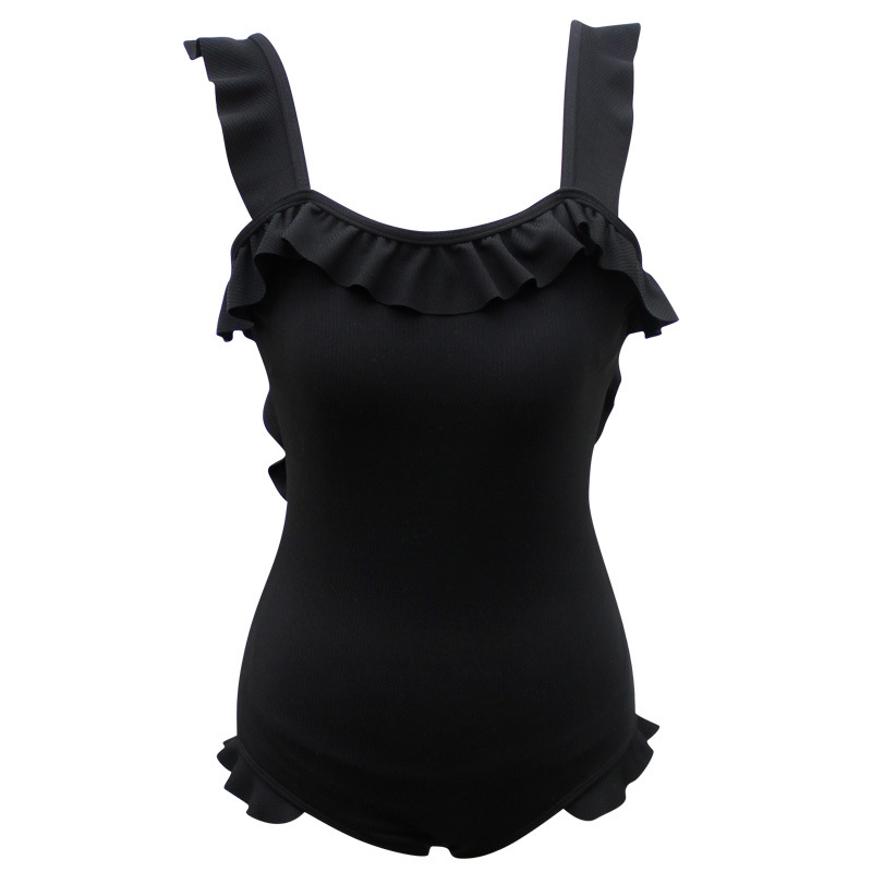 공장 직접 주름 장식 요정 팬 블랙 섹시한 등이없는 배꼽 커버 보수적 인 원피스 수영복 여성 온천 수영복