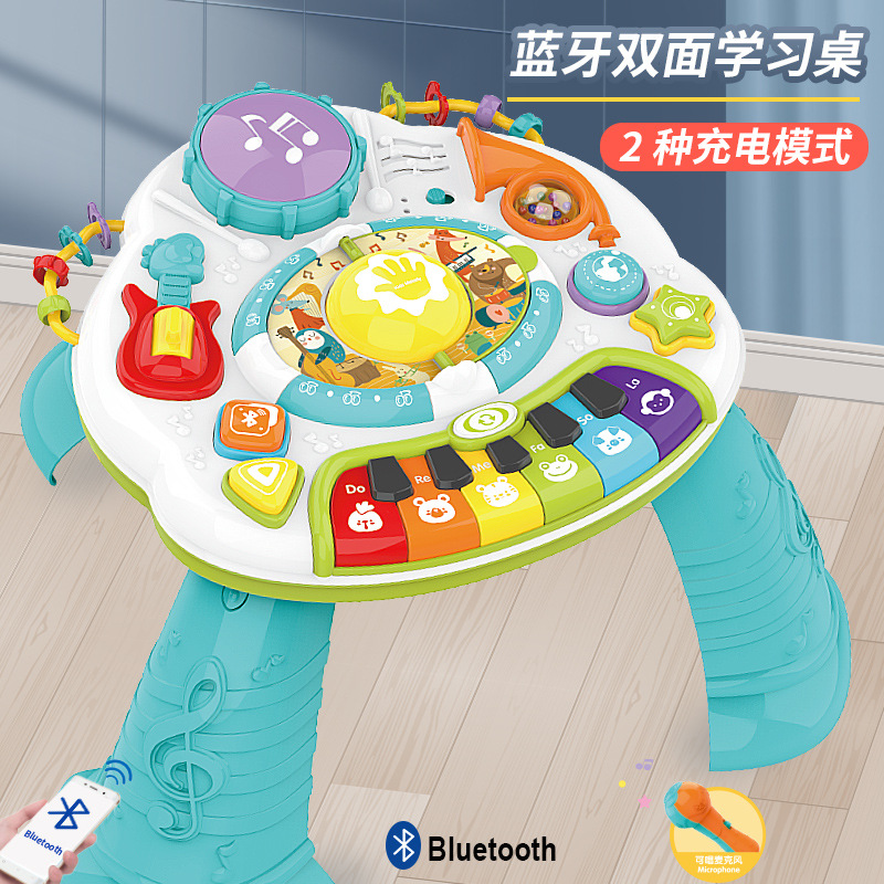 功能:带灯光音乐,话筒,手拍鼓,趣味绕珠,内置60首MIDI 6首钢琴曲 5首乐器演奏曲 可通过蓝牙连接手机拓展内容,内置锂电池可USB充电。