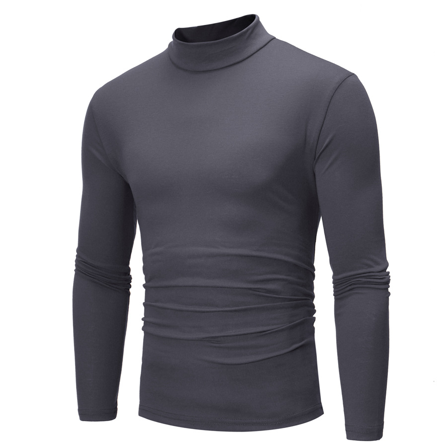 2020 새로운 가을과 겨울 크로스 보더 남성 캐주얼 솔리드 컬러 하이 칼라 남성 슬림 긴팔 티셔츠 기본 셔츠스토어 가기