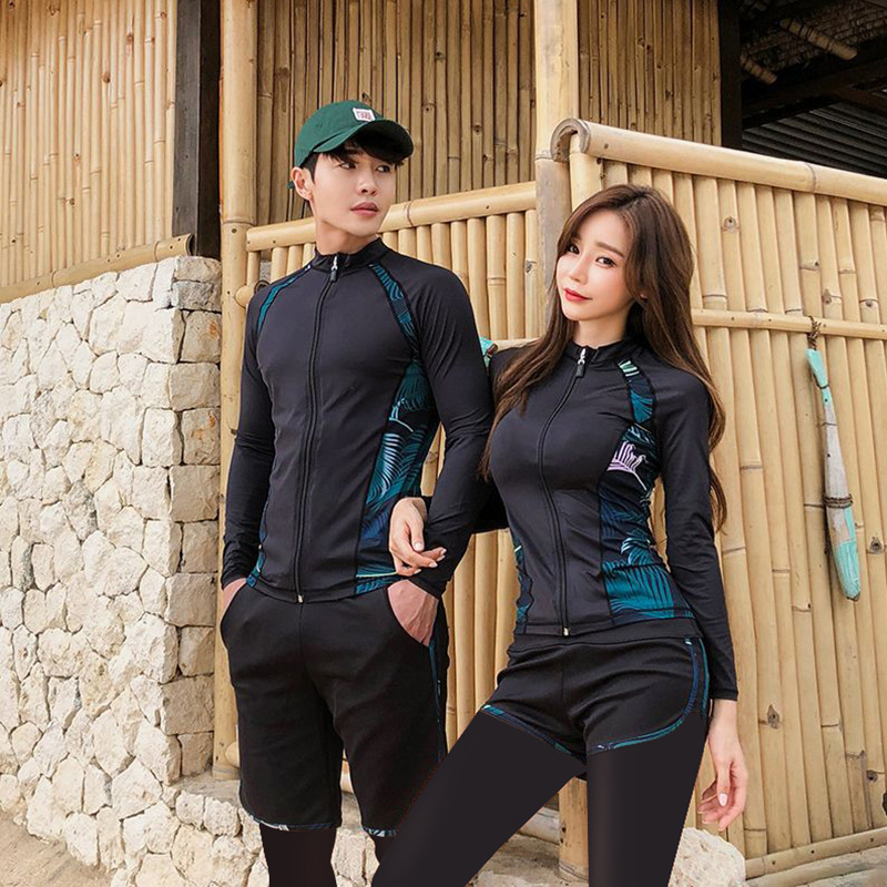 새로운 커플 세트 수영복 분할 복서 바지 긴 소매 태양 보호 세트 다이빙 서핑 온천 도매 Daifa