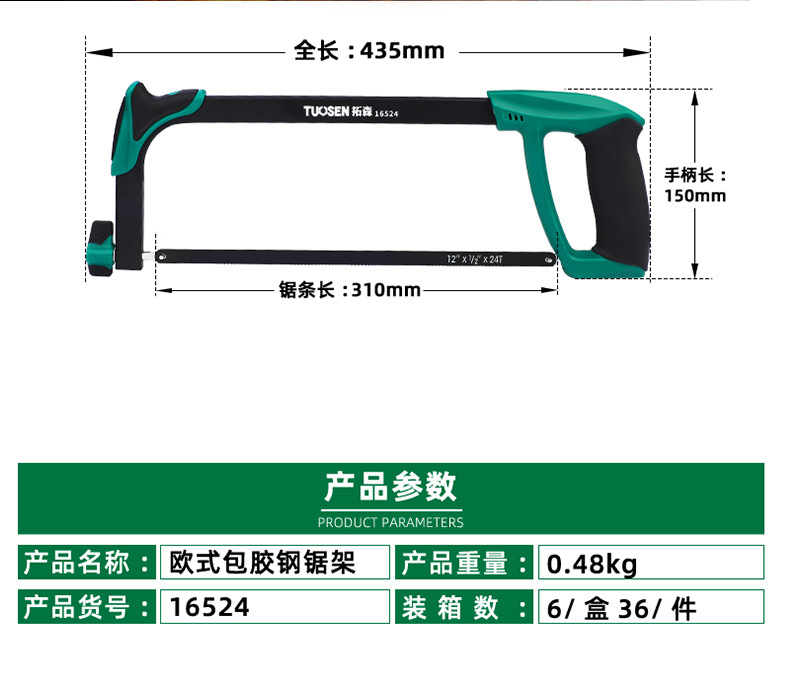 • 16524, 유럽 코팅 쇠톱 프레임, 6/상자 36/조각, 0.48kg